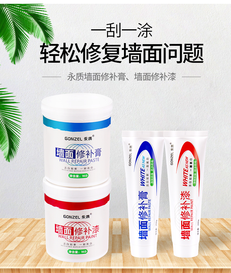 永质墙面修补漆修补膏,墙面破损,钉眼洞孔、墙面裂缝。一刮一涂,轻松修复墙面问题,居家必备,卷后仅58元,2件9折,3件8.5折【送运费险】