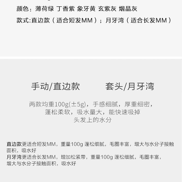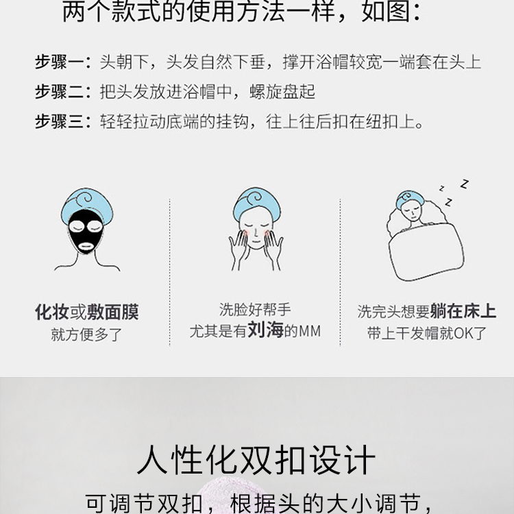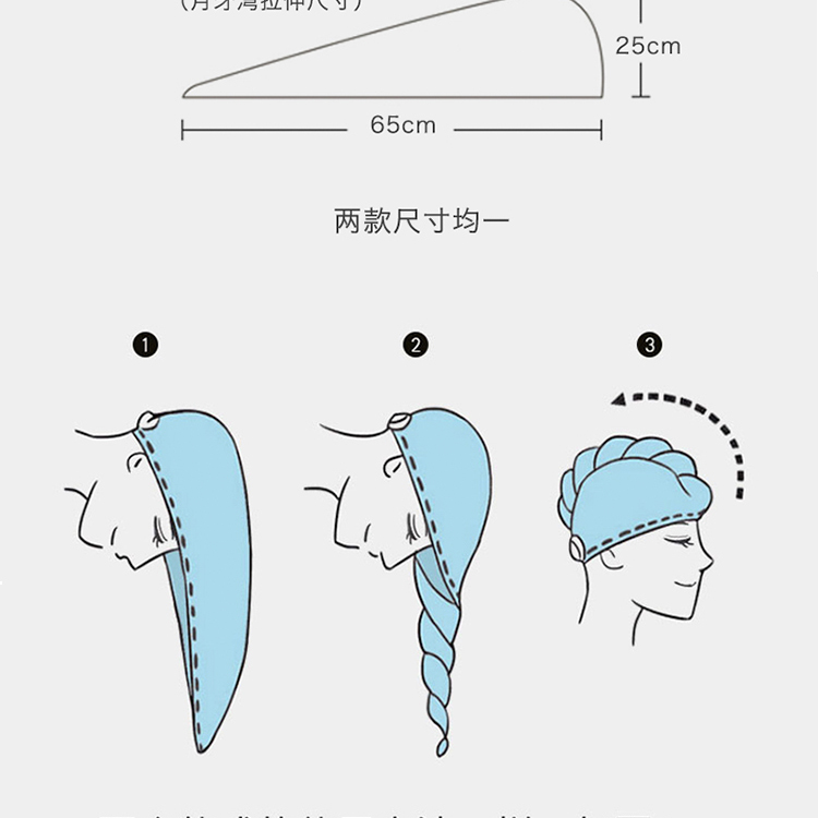 超吸水的干发帽,长发短发都适用~采用会喝水的强力吸水纤维,吸水速干!大大节约干发时间,减少发丝损害。