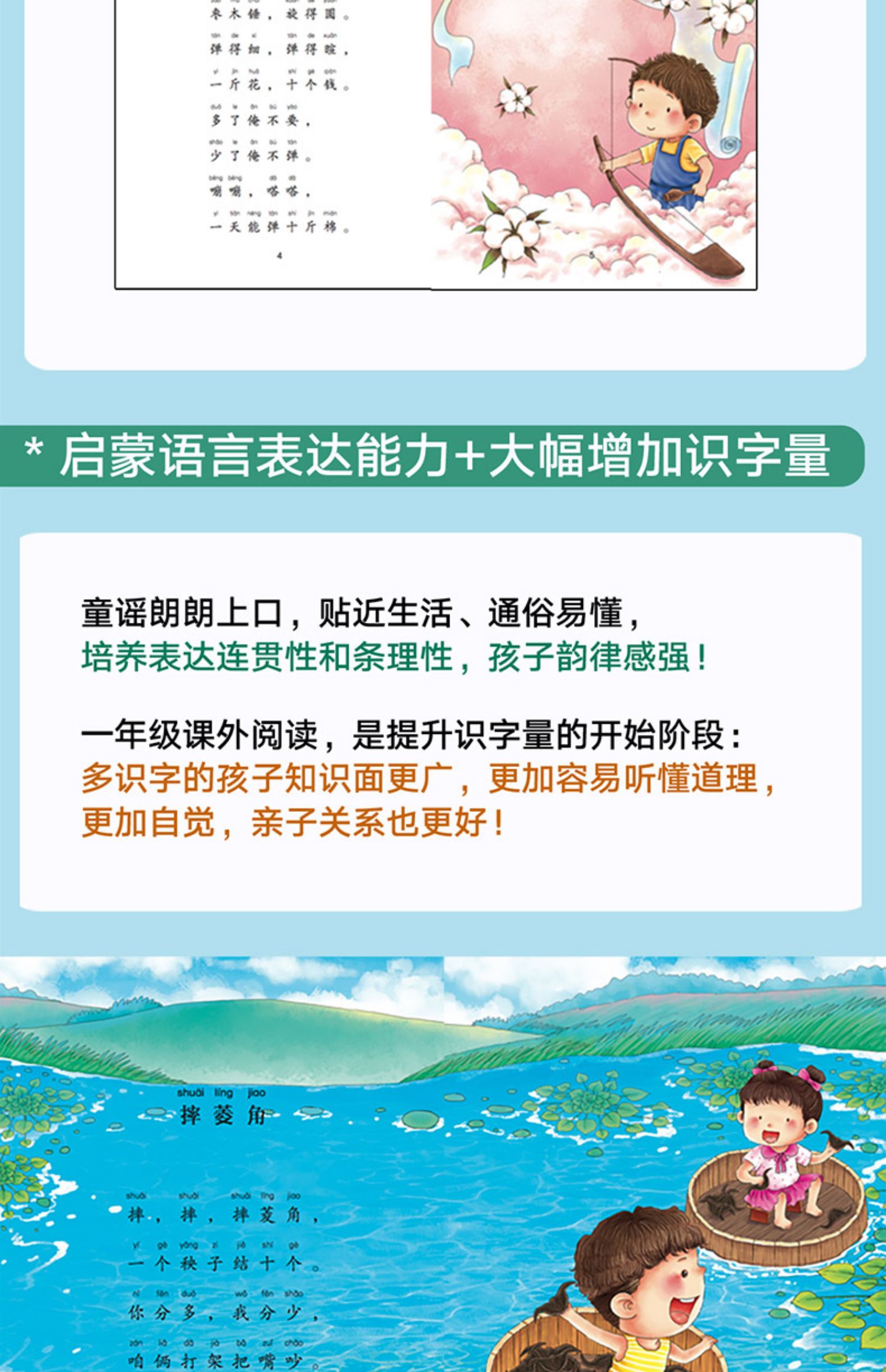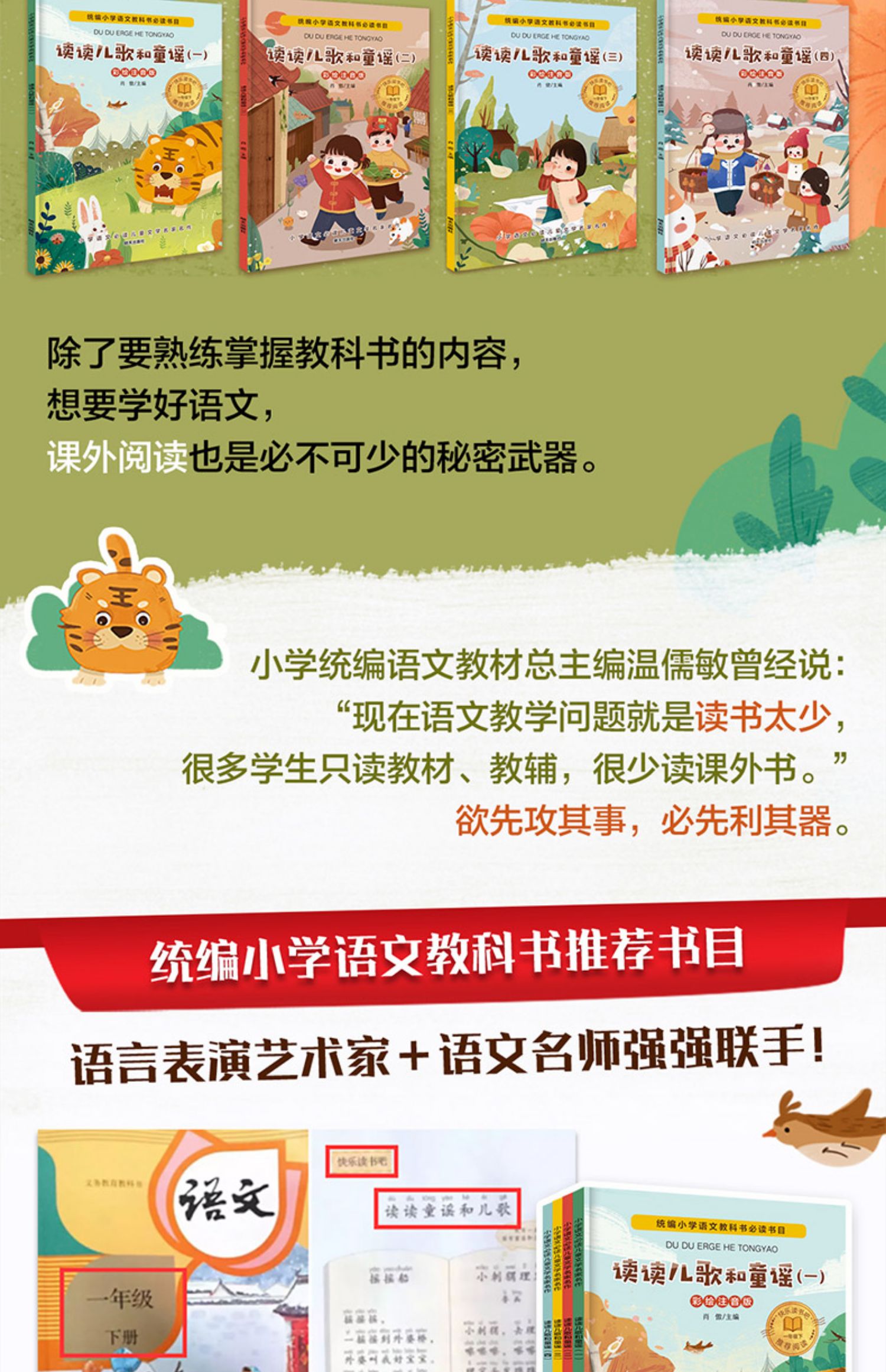 快乐读书吧推荐书目,人教版一年级下册必读,读读童谣和儿歌全4册,16开大版本,全彩印刷,插图精美,文字带有注音,学校指定版,儿童必读课外读物。学前幼儿园宝宝早教启蒙教材,小学生寒假开学季必备。