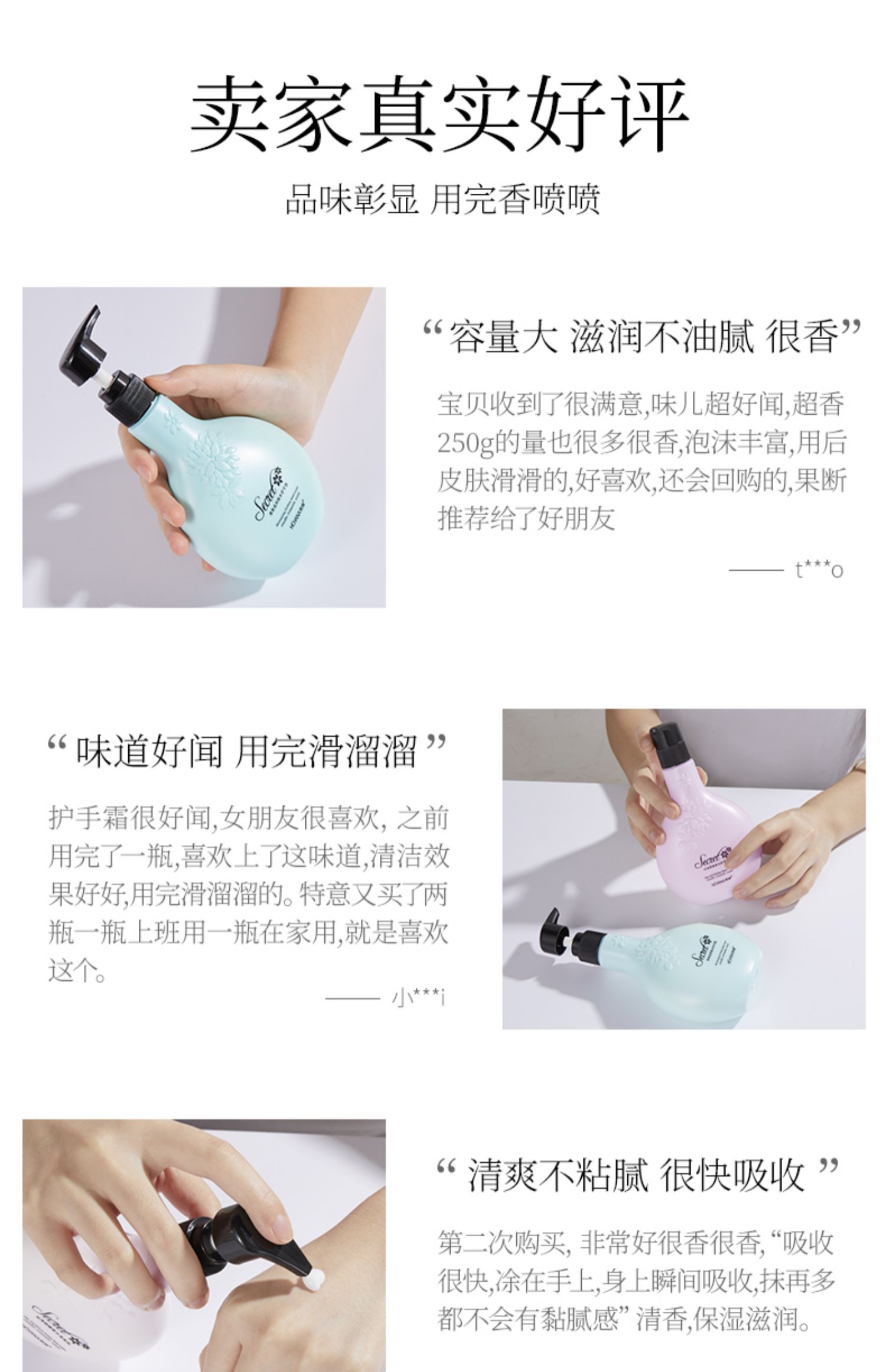 【250ml/瓶,买一送一,实发2瓶】达人力推!香水滋润护手霜,植物精粹,防冻干裂,滋润保湿不油腻,淡化纹理,改善粗糙,呵护好女人第二张“脸”让你的手拥有水嫩白皙。