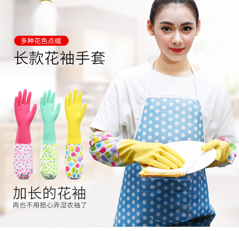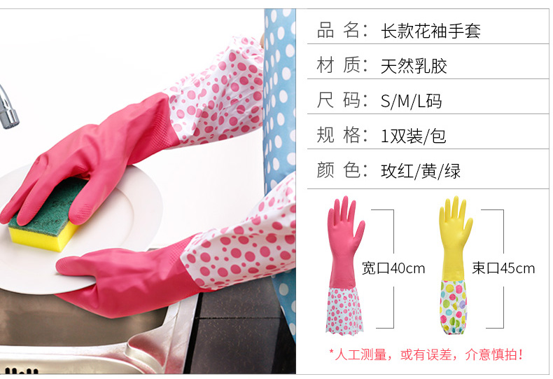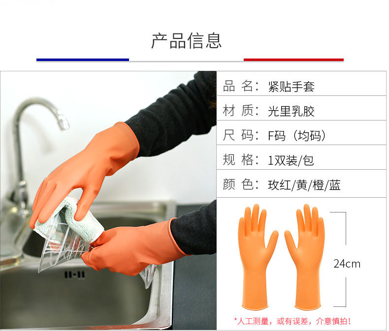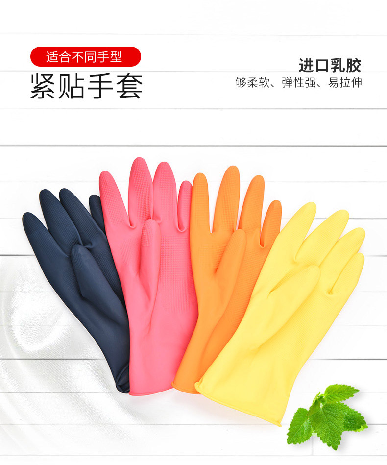 【4双】天然乳胶厨房耐用洗衣家务手套