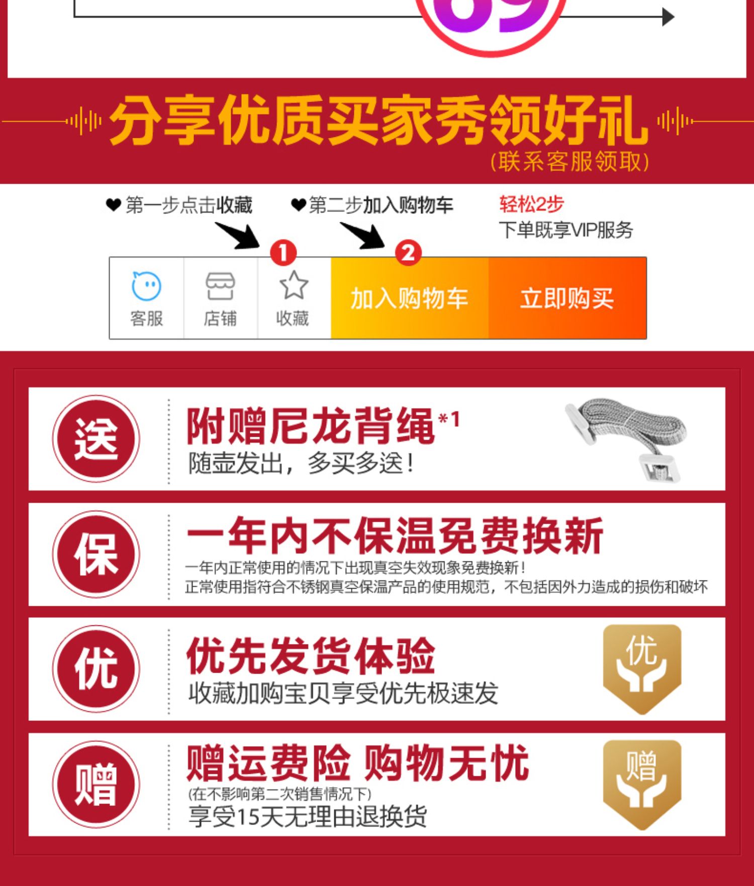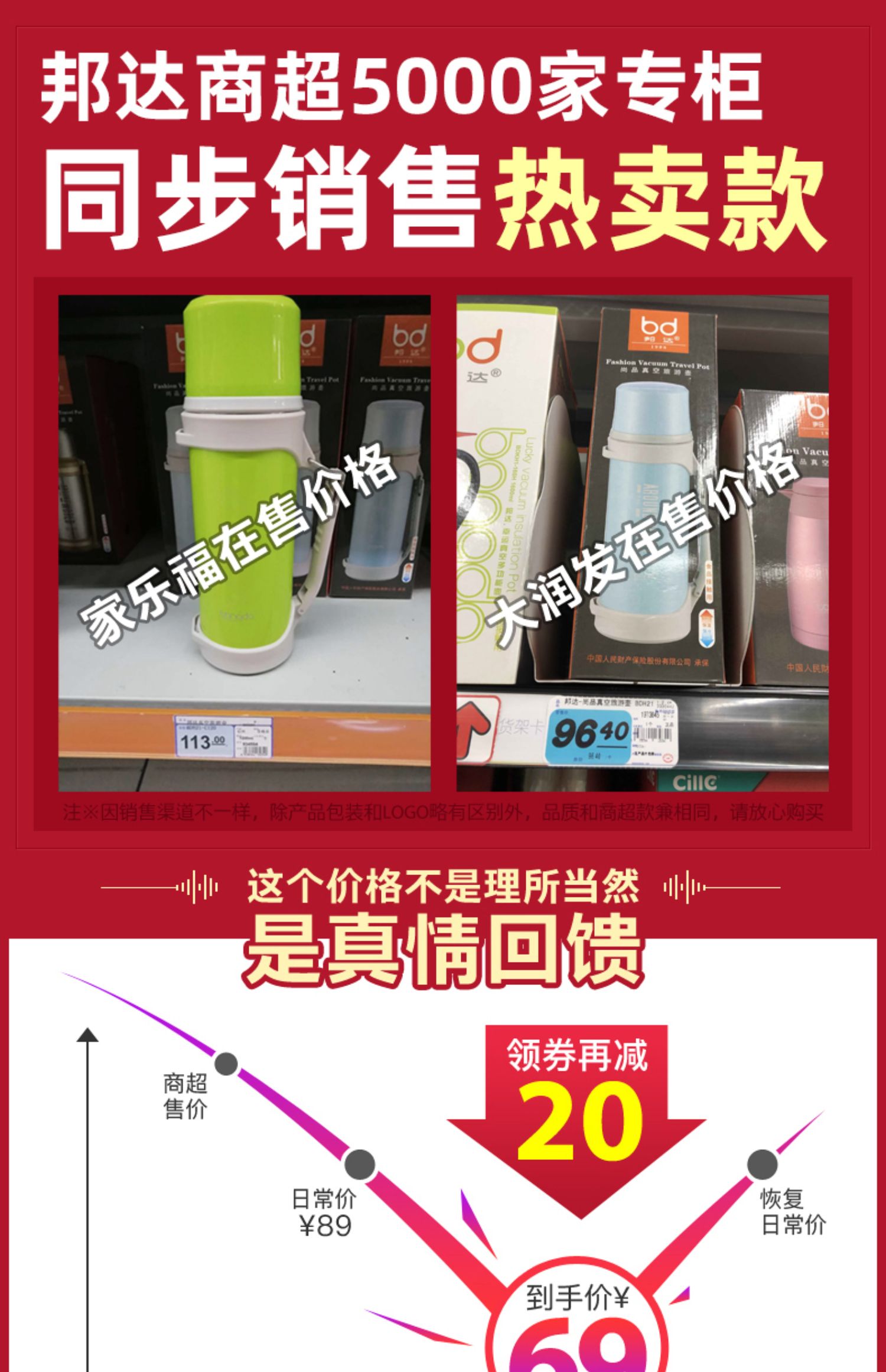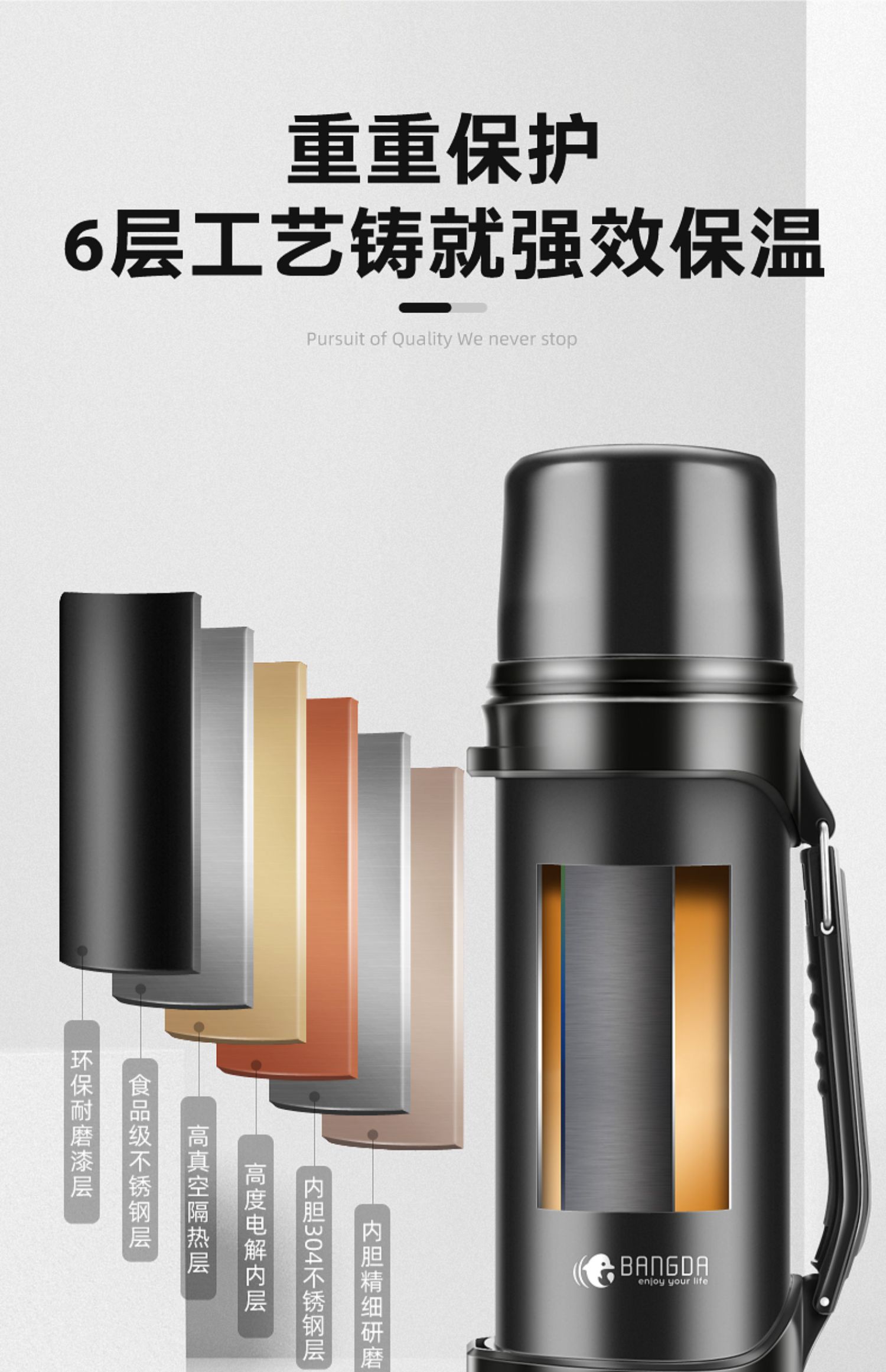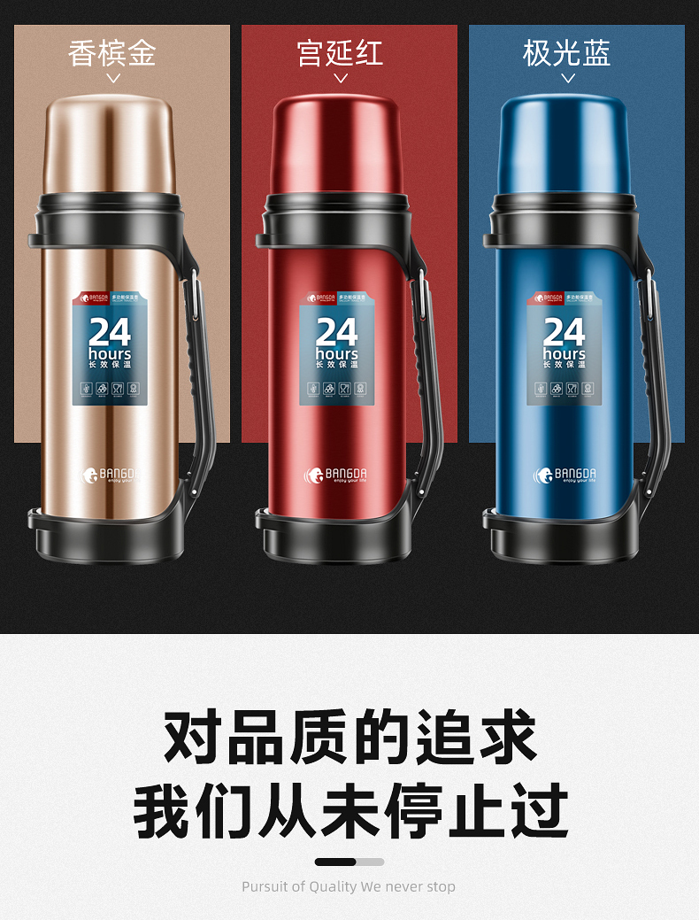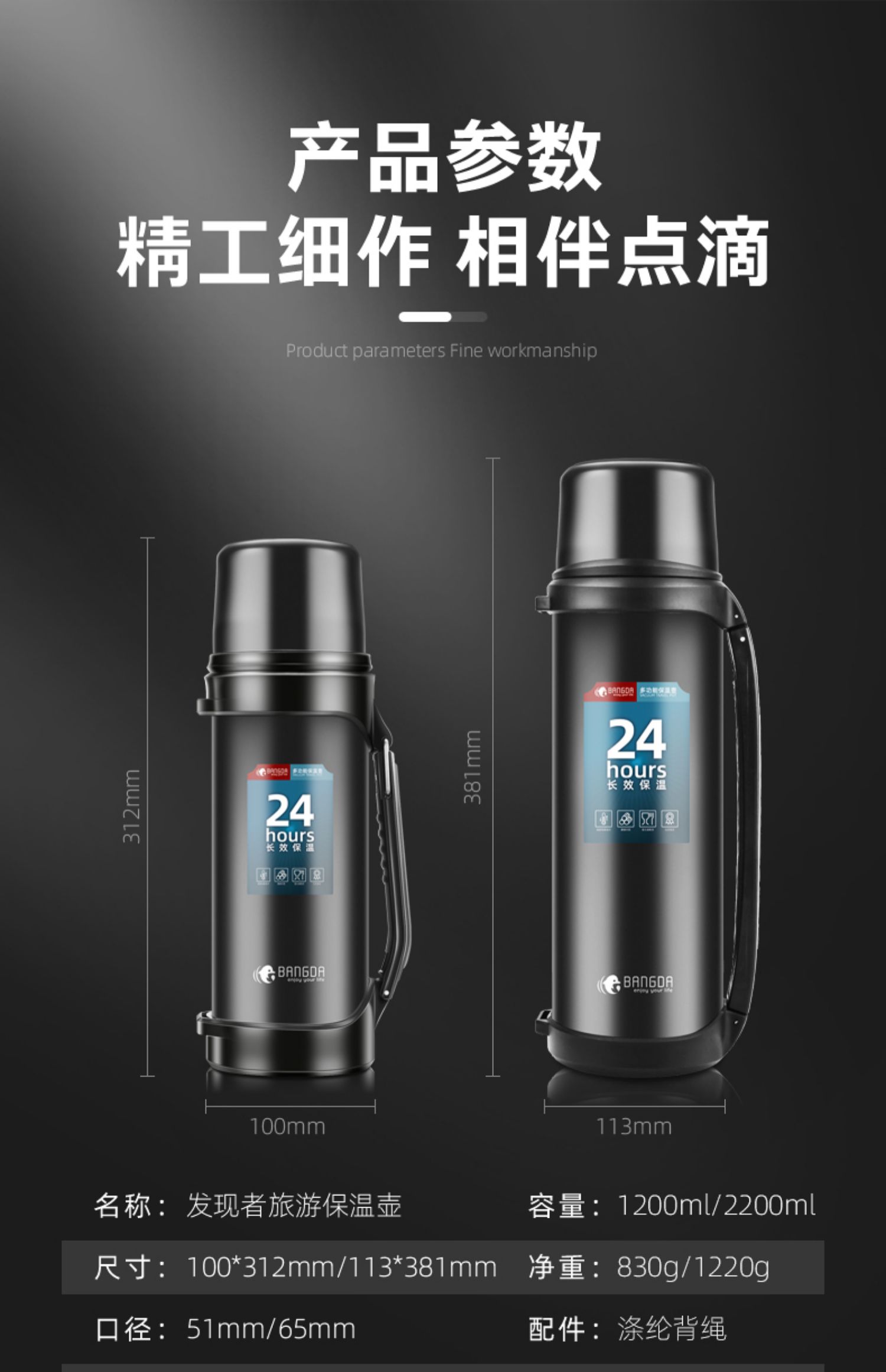 【推荐】邦达品牌周年庆,限时抢购,304不锈钢内胆,一键出水内盖,强力尼龙背绳,食品级pp饮水外盖,365天不保温免费换新【送运费险】