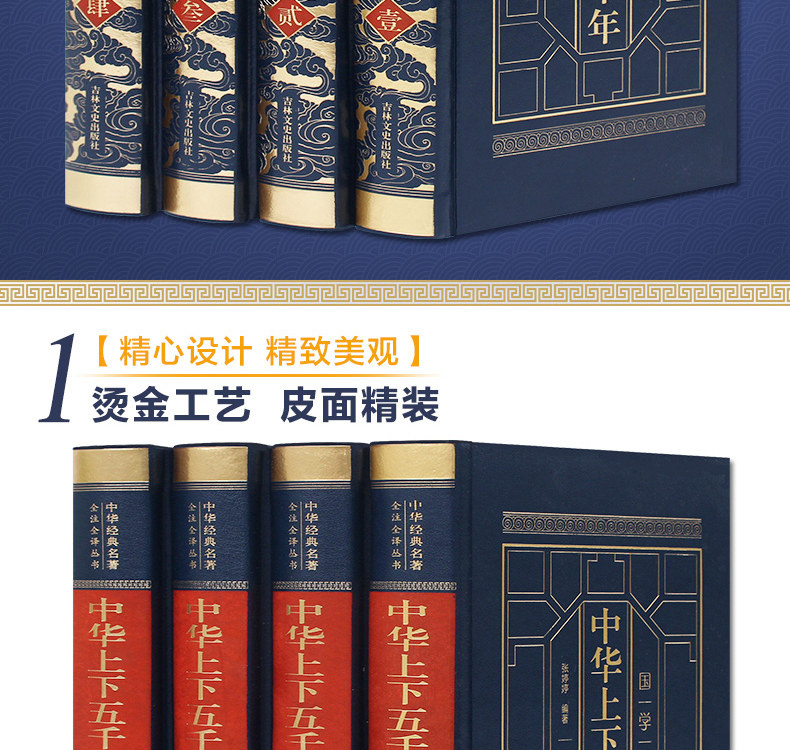 中华上下五千年珍藏版,完整无删减,这是一套可以传家的历史宝典,烫金工艺,皮面精装,进口纸张,粗线锁边,内容通俗易懂,无障碍阅读!古今实例,身临其境栩栩如生~送礼收藏都是极有面子的!