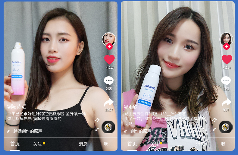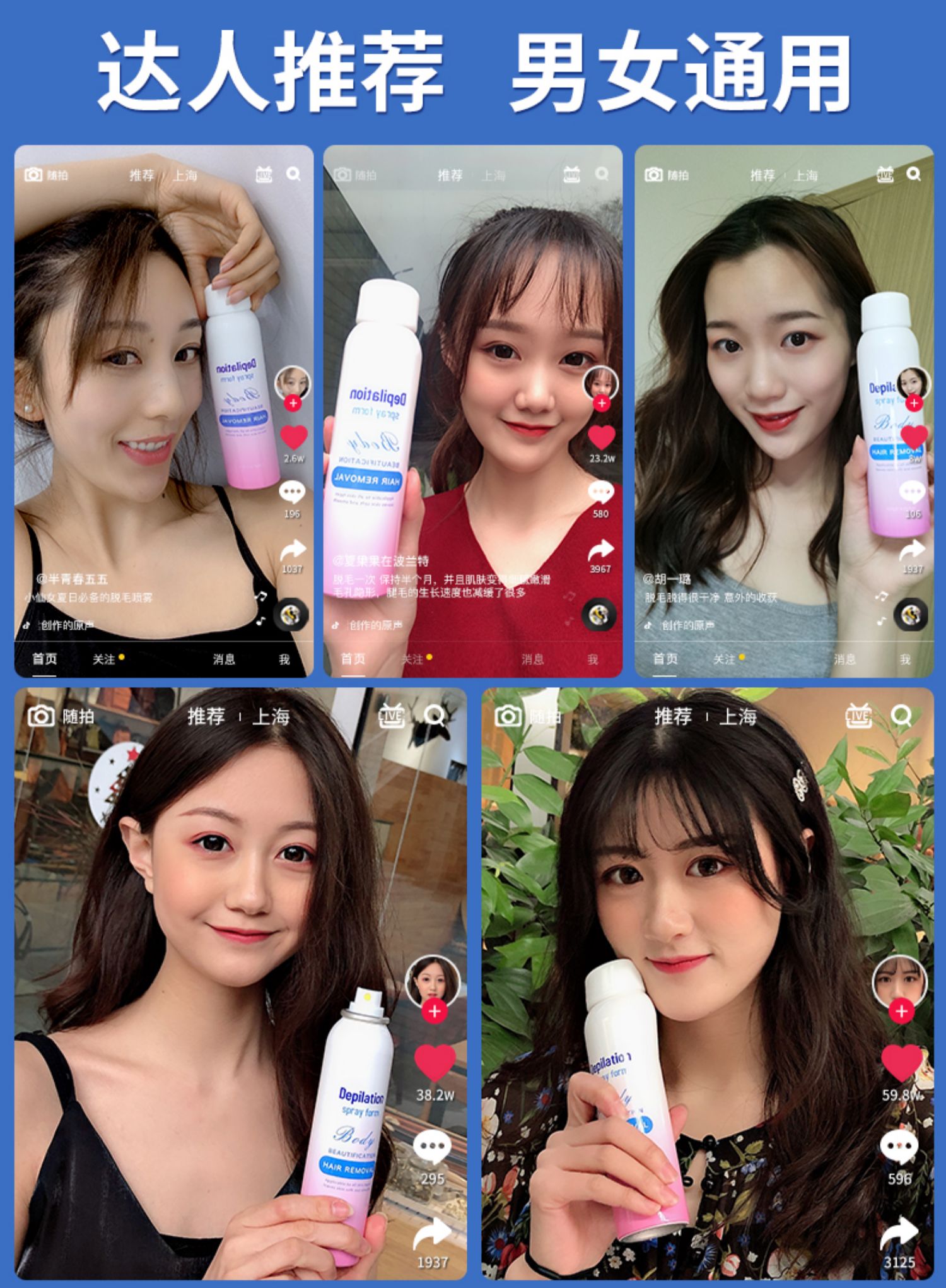 【脱毛神器—抖音同款】5分钟懒人脱毛,温和无痛感,气味清新,天然安全,只需一喷一抹一擦,OMG,脱得干干净净,不留小黑点,皮肤光溜溜的,还白了!能抑制毛毛生长,越长越少!再也不用去美容院了