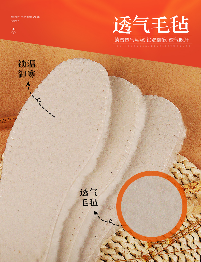 【神福利】5双装,大底羊毛毡材质鞋垫,质感轻盈,亲肤柔软,加厚加绒,透气吸汗,蓬松浓密,精细包边,御寒保暖,给你家温暖整个寒冬。