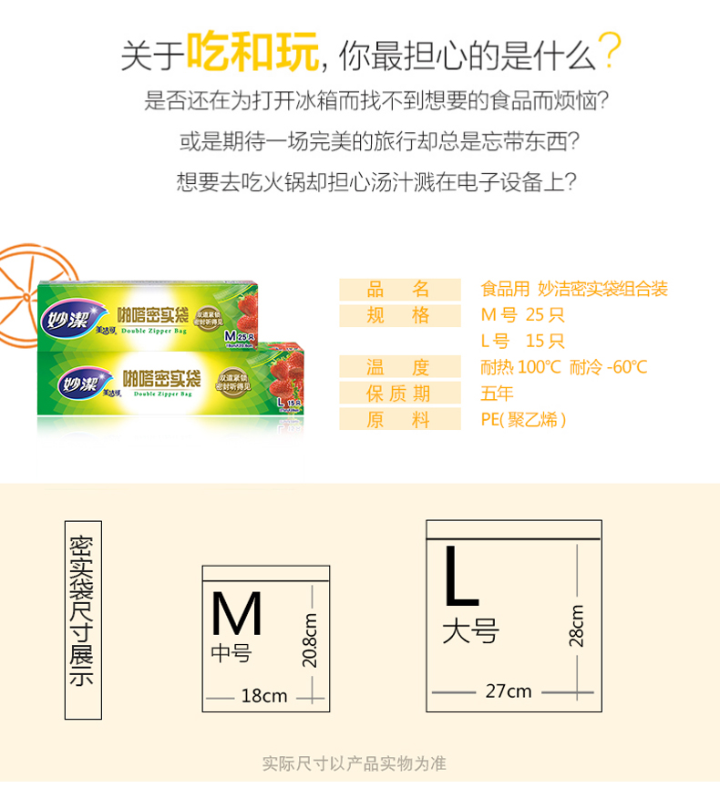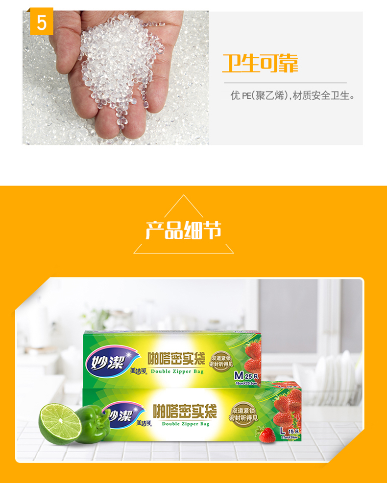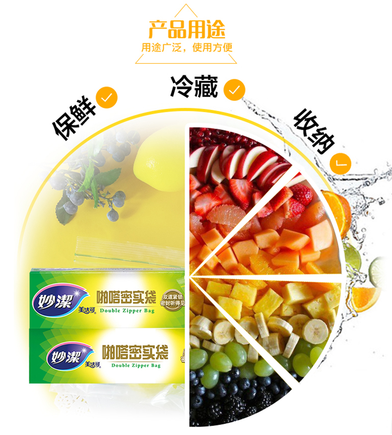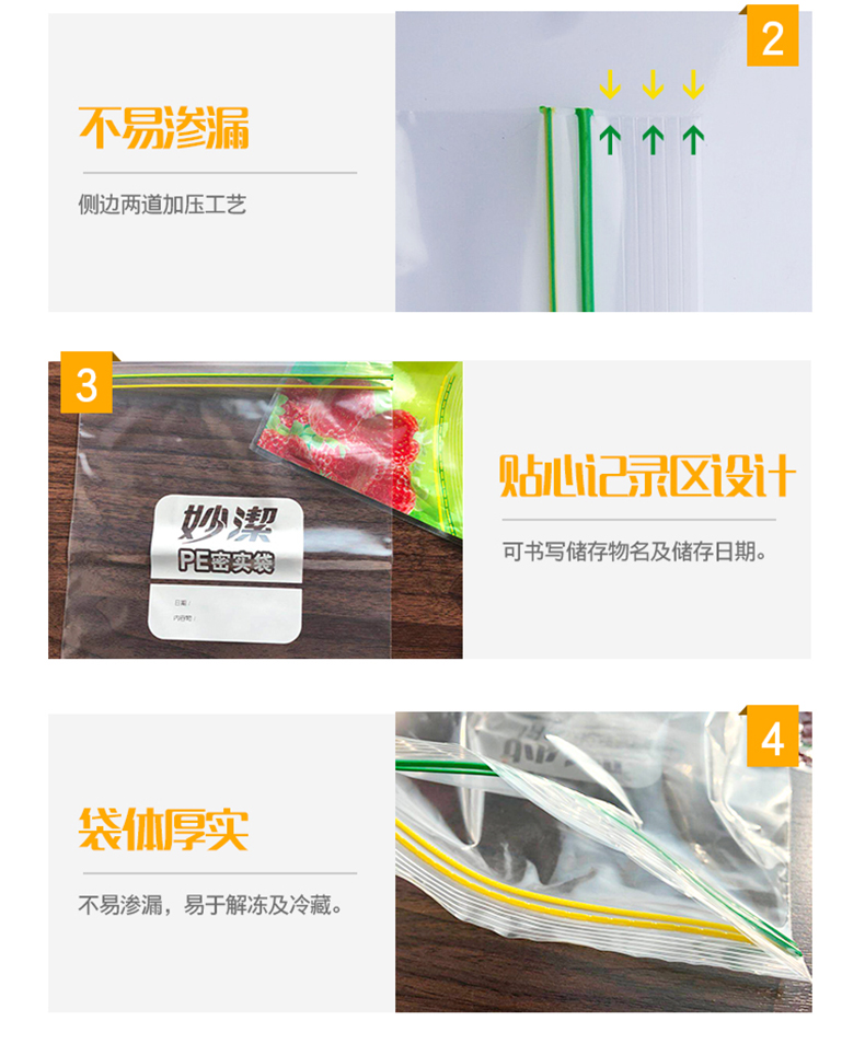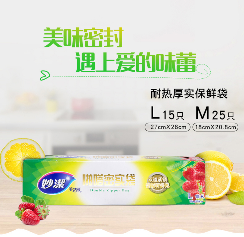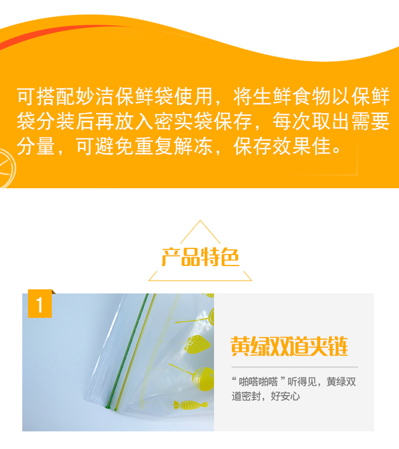 热卖促销!!!妙洁PE密实袋,家用食品袋密封袋,透明加厚双封条自封口大中号保鲜袋,食品级、PE材质安全、双夹链封口、更密实、到手价8.9