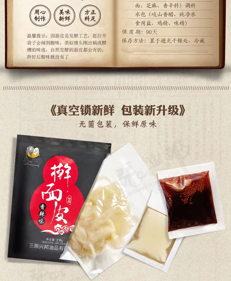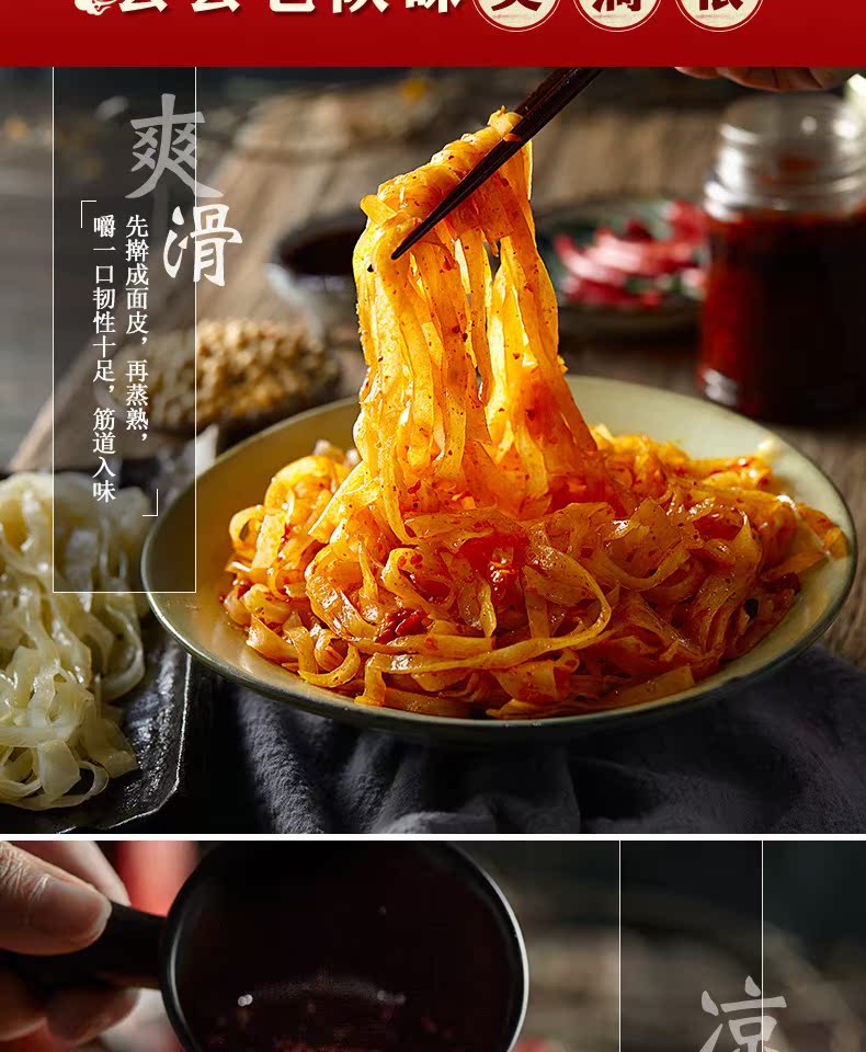 【网红擀面皮】微博多个大V安利过这款凉皮,2袋顶的上别人家5袋份量,陕西特色凉皮,面皮劲道,口感好,高温熟化非油炸,手工制作,泼辣子酸辣味新口感,无辣不欢辣过瘾,好吃停不下来。