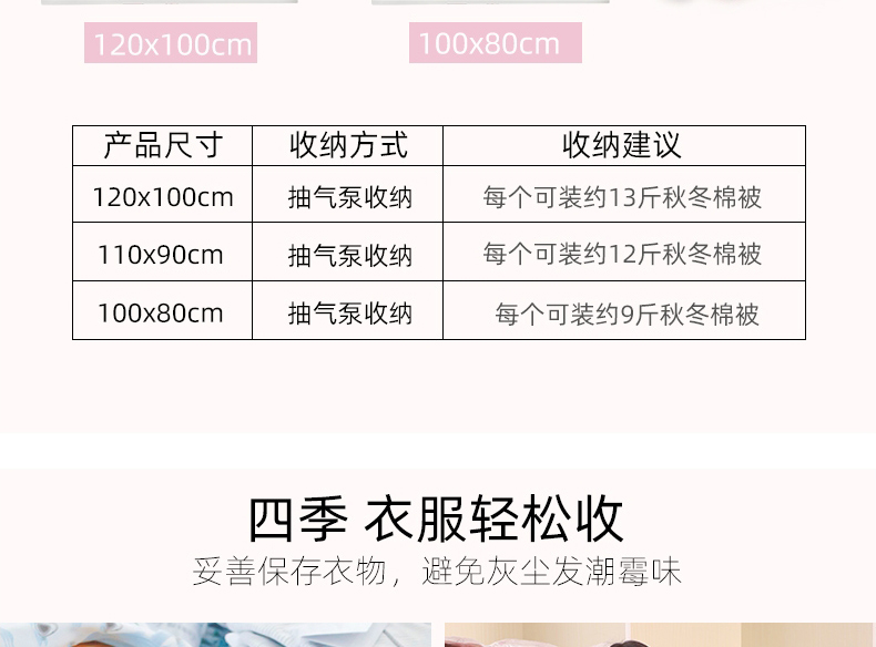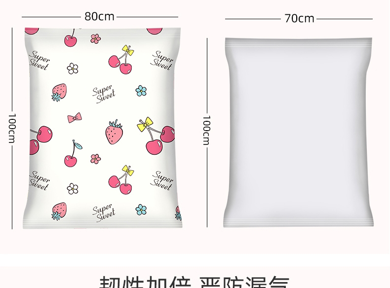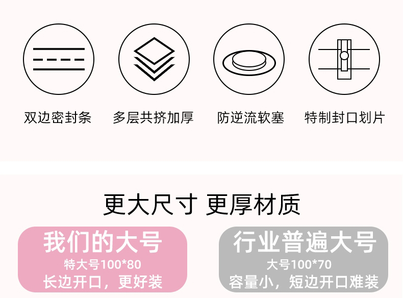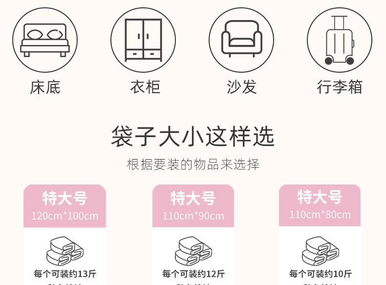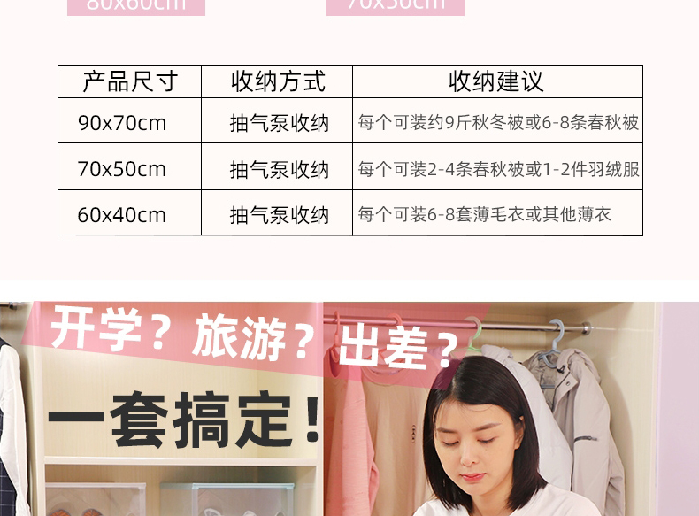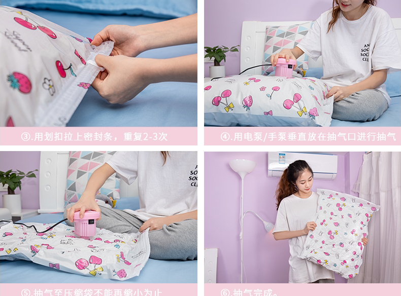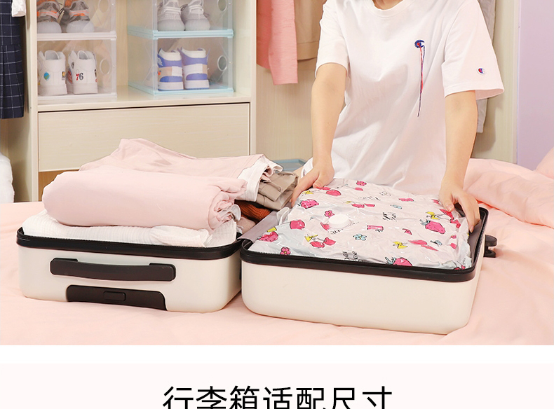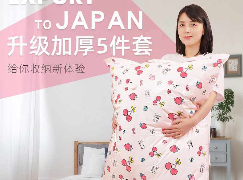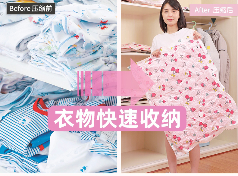 升级加厚5件套,先进工艺,双边密封条,特质封口划片,严防空气逆流软塞,轻松收纳更轻松,旅行出门必备,节省行李箱空间,家居收纳必备,给衣柜节省跟大空间,搬家使用也更方便,四节皆可用。