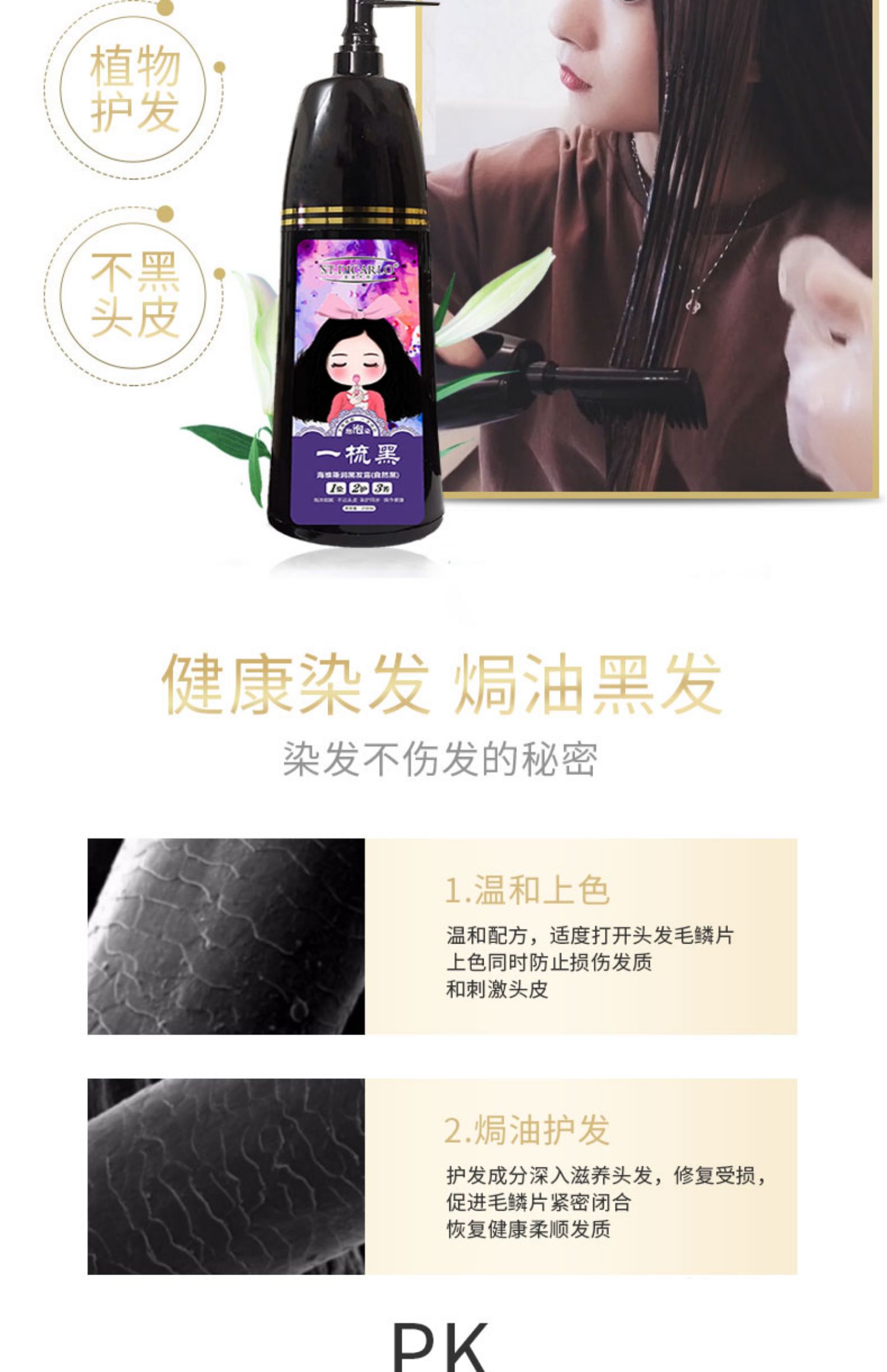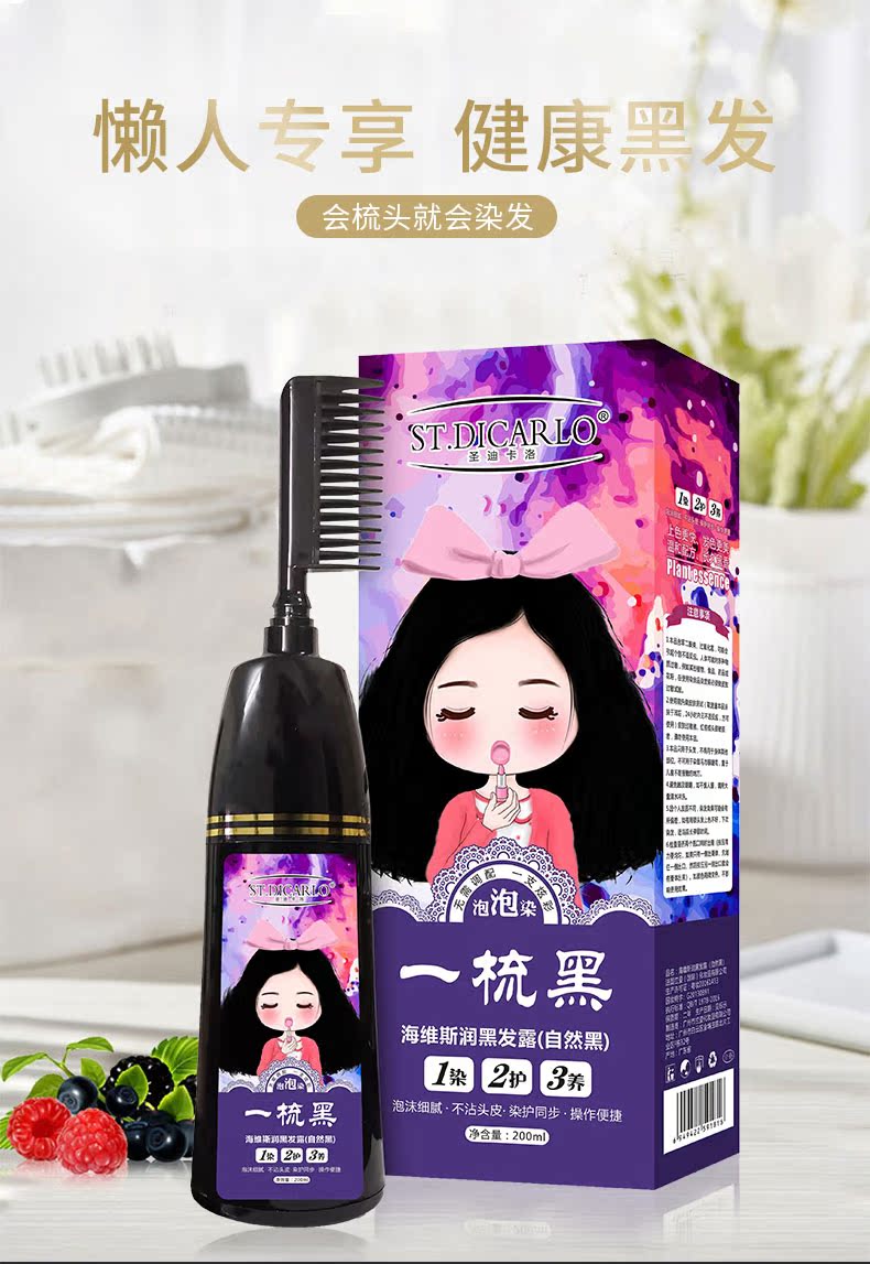 【圣迪卡洛】旗舰店,专门做高端染发剂,纯植萃取物精华,无需调配,染完不伤发,不黑头皮吗,一按一梳一洗,轻松搞定白发,黄发,健康安全~不伤头皮【赠运费险】