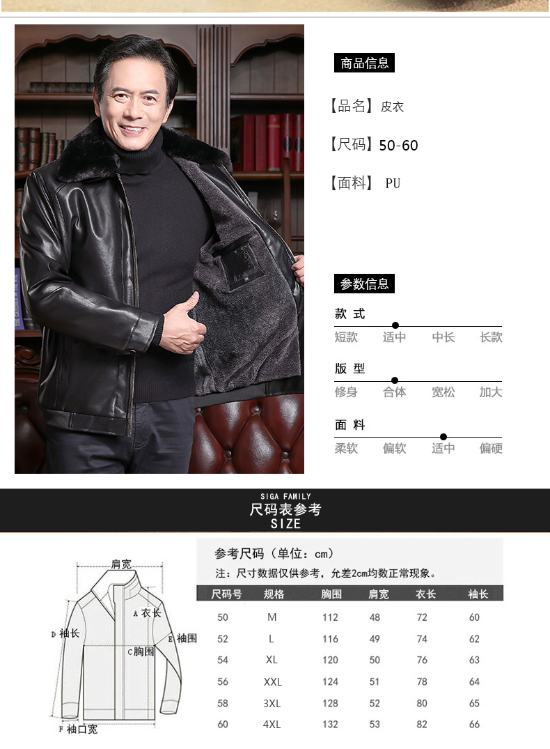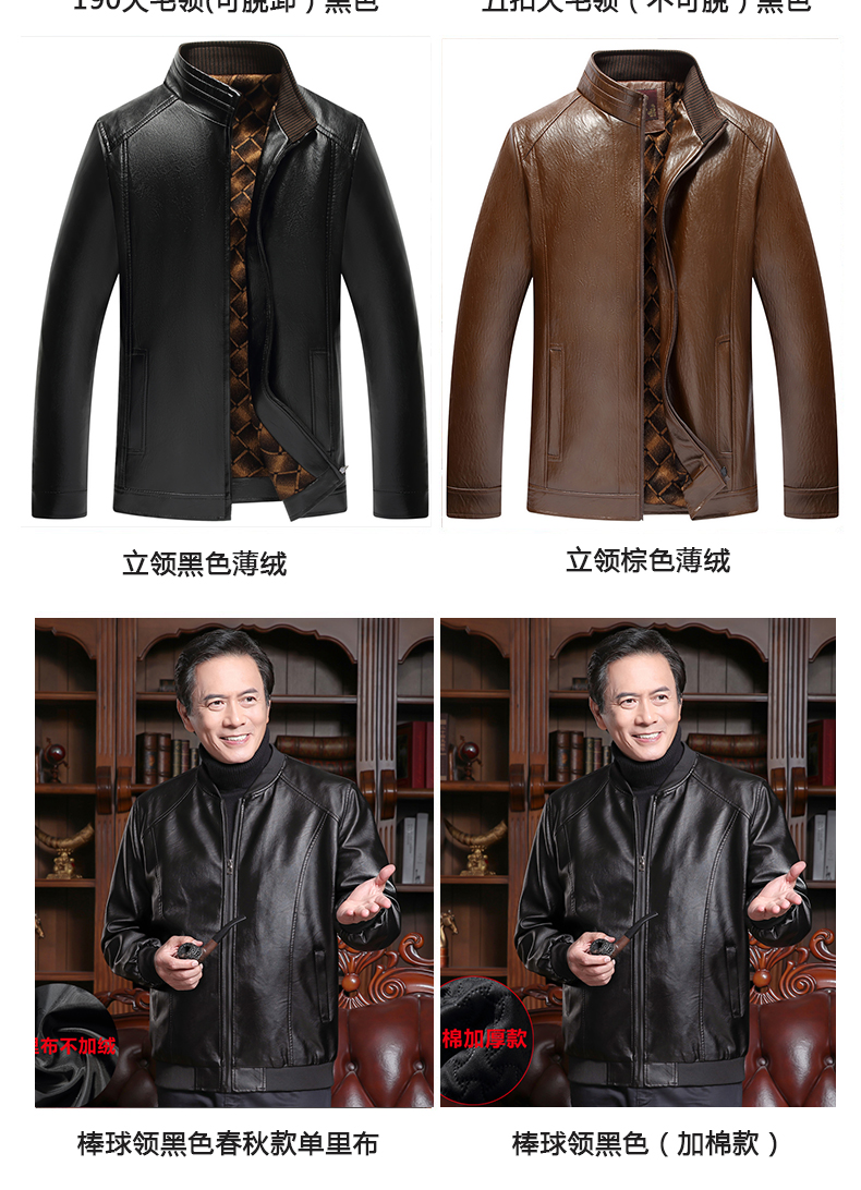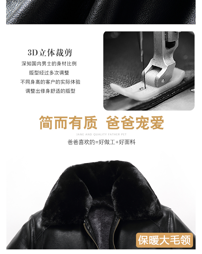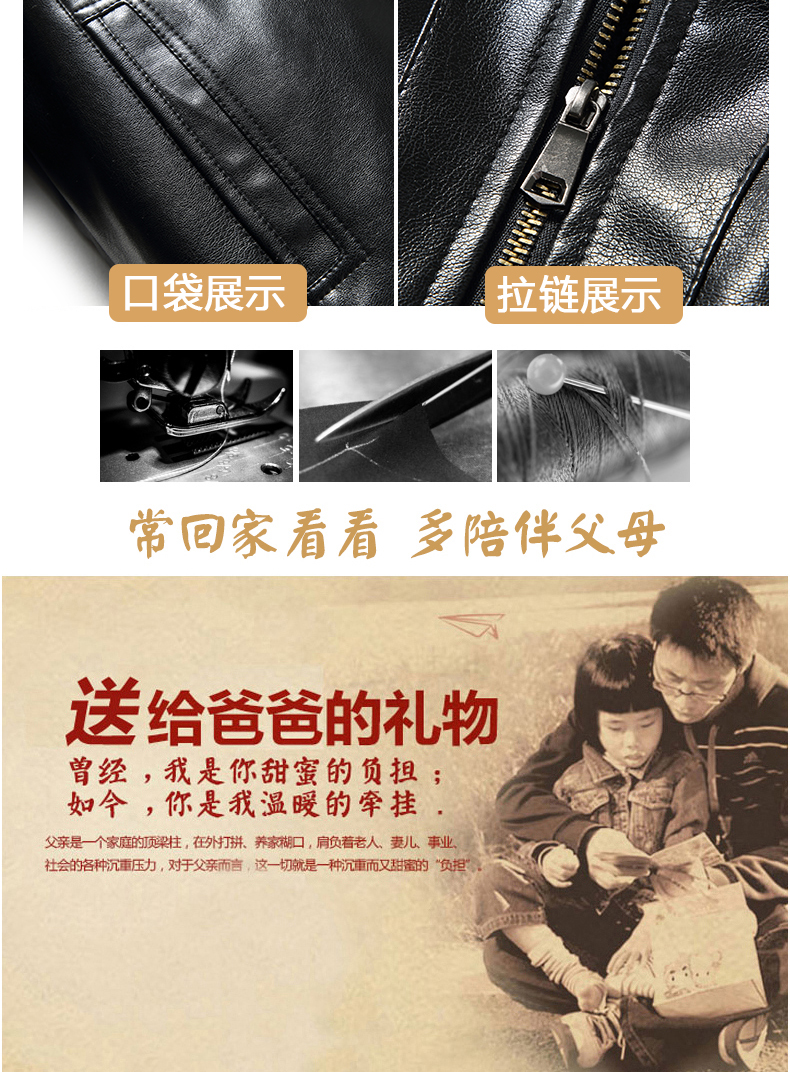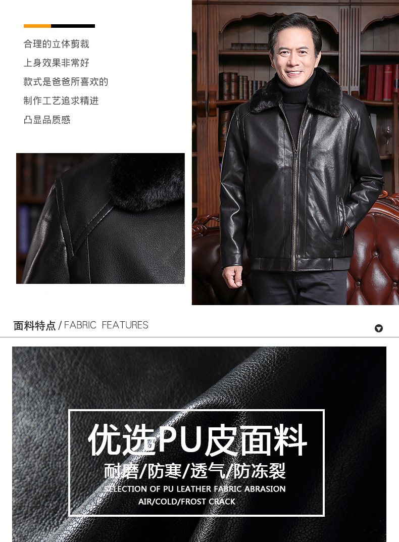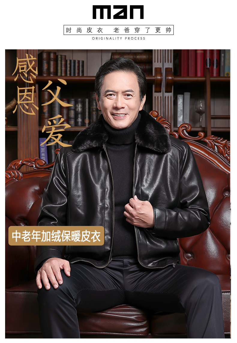 【已验货】超有质感皮质,柔软舒适,加绒加厚可选,立体剪裁,挺括有型,别致内涵,防风抗寒,强效保暖,做工细致,不会掉绒,赶紧给爸爸来一件,给他冬天贴心的呵护