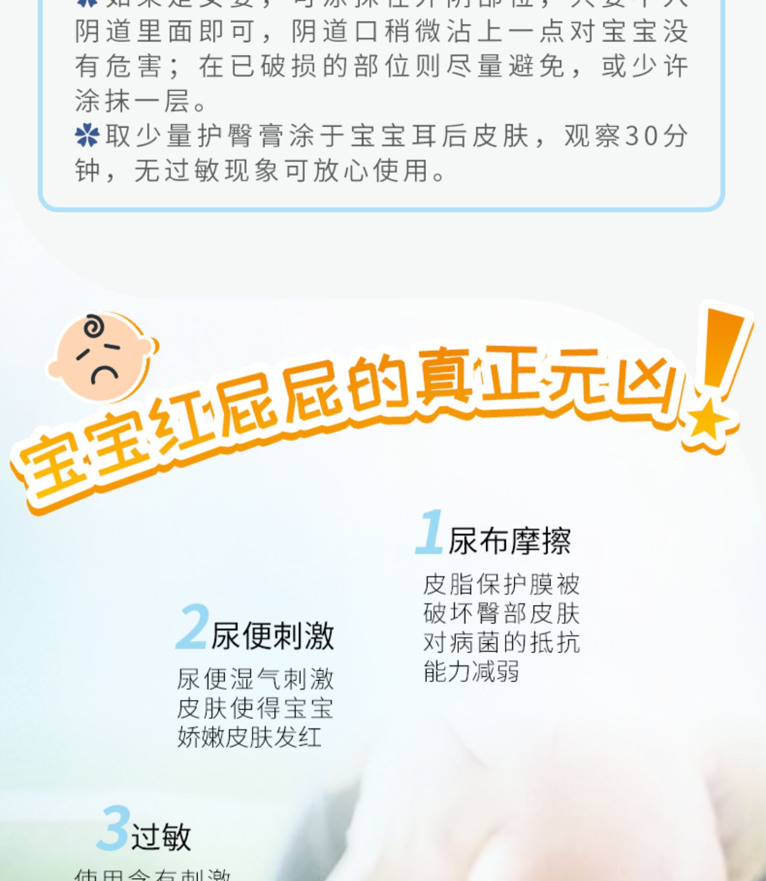 预防红屁屁,尿布疹,隔离舒缓,天然成分,呵护肌肤,护臀润肤,效果真的很棒,天然无激素,祛湿止痒,专为宝宝幼嫩肌肤研发!