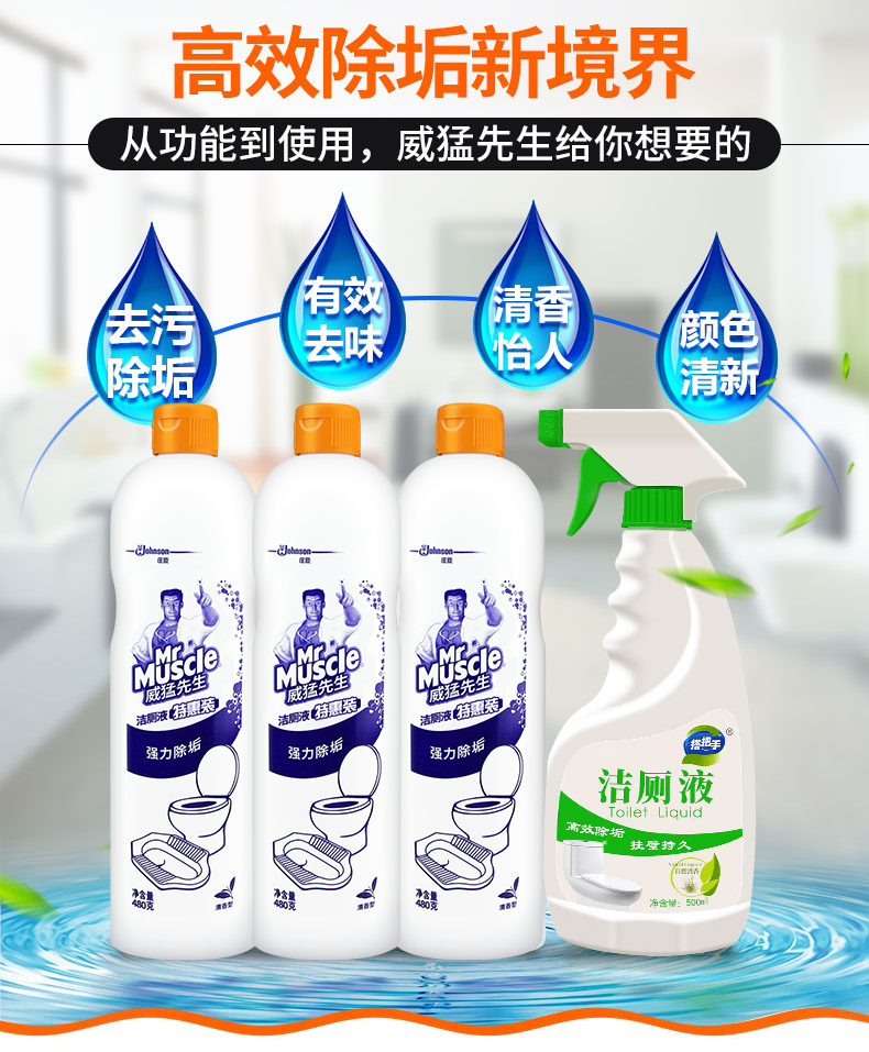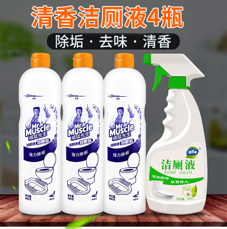 【18万+好评,4.9高评分】美国威猛先生,全球清洁专家。大牌来袭,超值组合3+1瓶装,每瓶480克,强效除污,持久挂壁,有喷头,不脏手,强效洁厕清香型,好用还不贵哦!