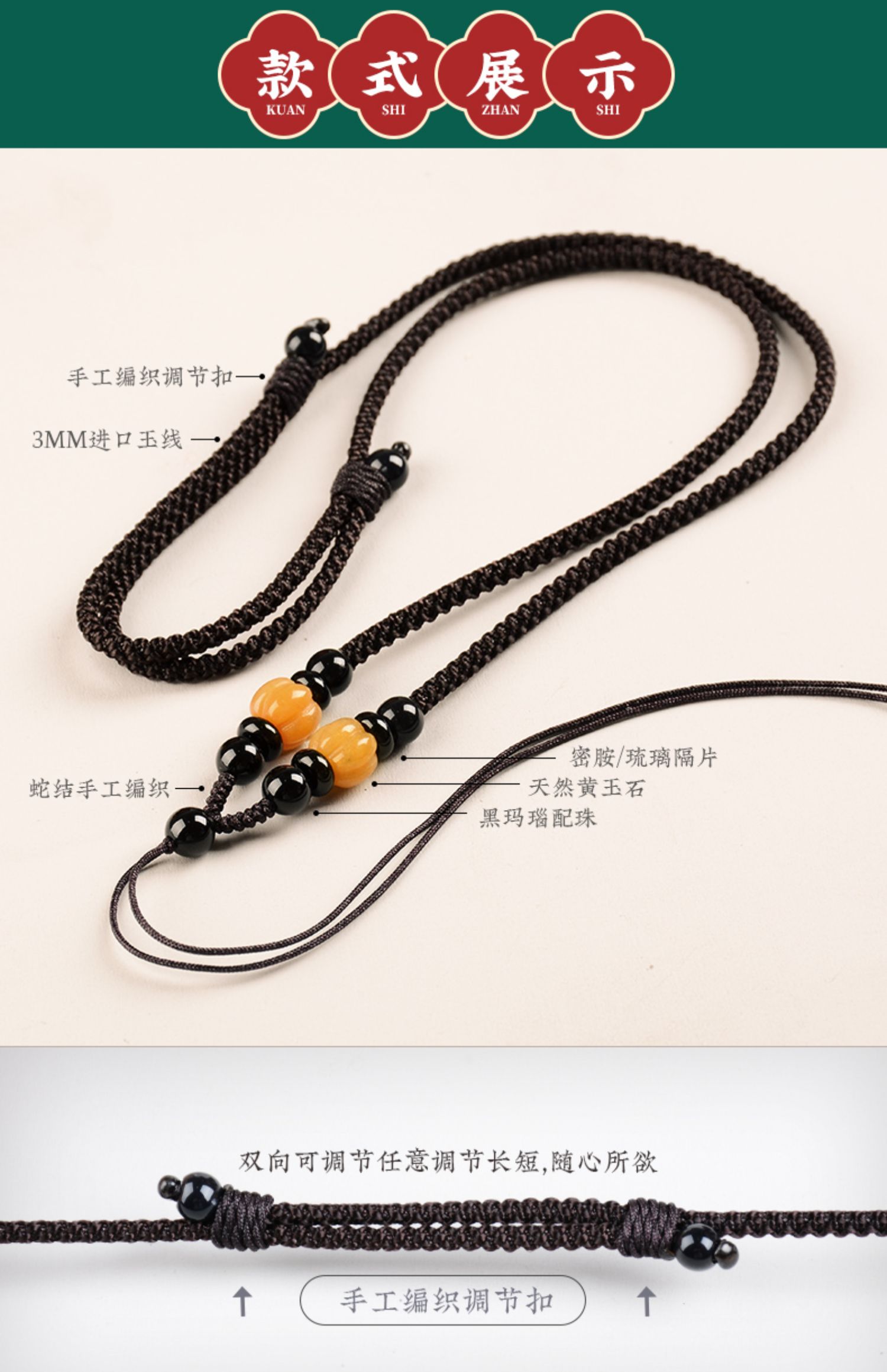 简约吊坠挂绳,纯手工串珠编织制作,选用进口品质玉线,经久不褪色,结实耐用,多种颜色款式随心选择。