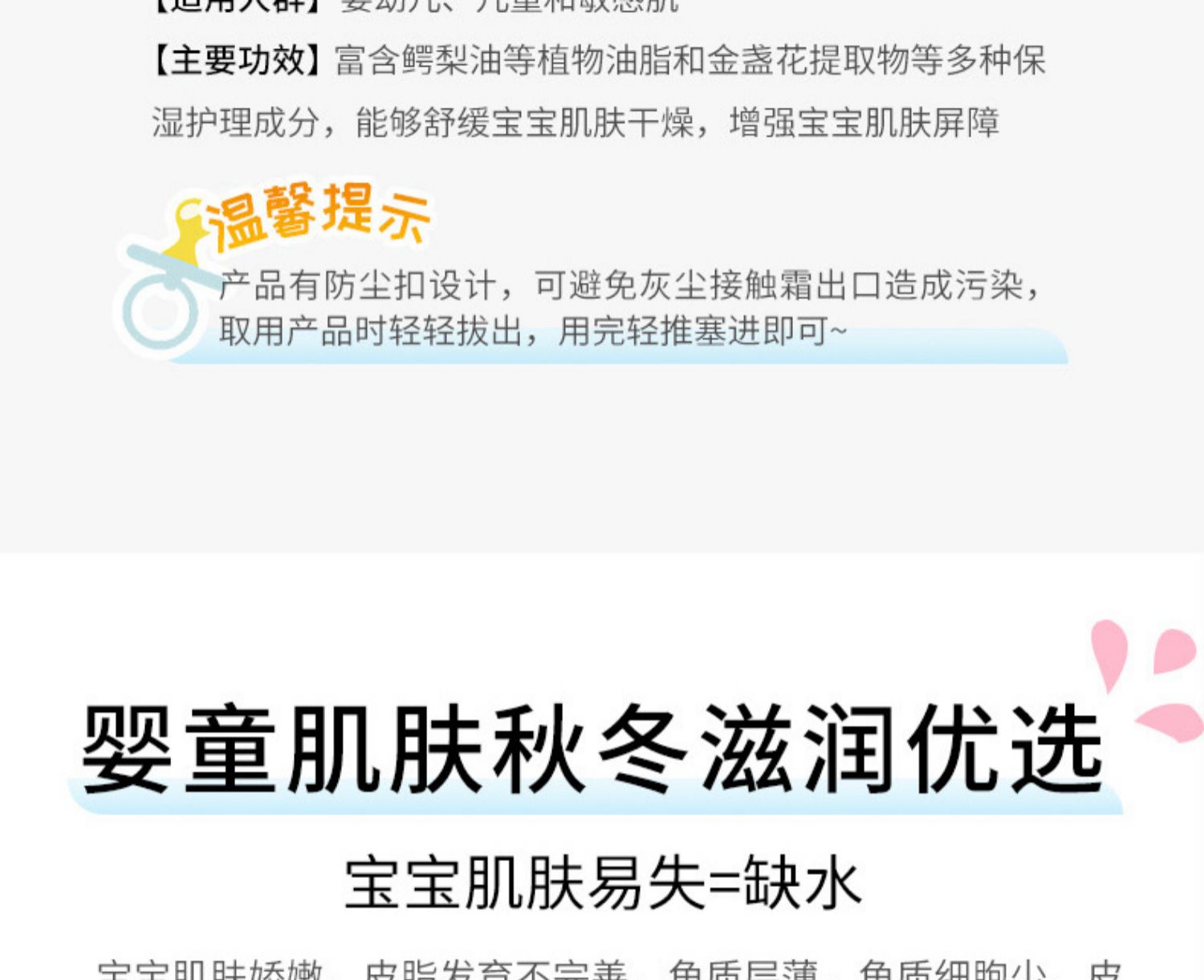 家庭婴儿护理品牌,万千妈妈宠爱的神奇面霜,秋冬必备滋润款,效能赶走湿红疹,滋润保湿,祛苹果脸,适合敏感肌、植物成分,妈妈更放心!