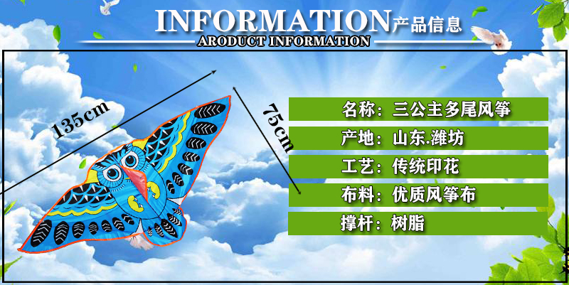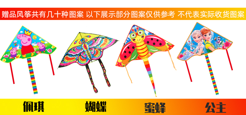 卡通风筝,骨架很牢固,抗撕裂,微风就能放起来,出门踏青,全家都能参与~