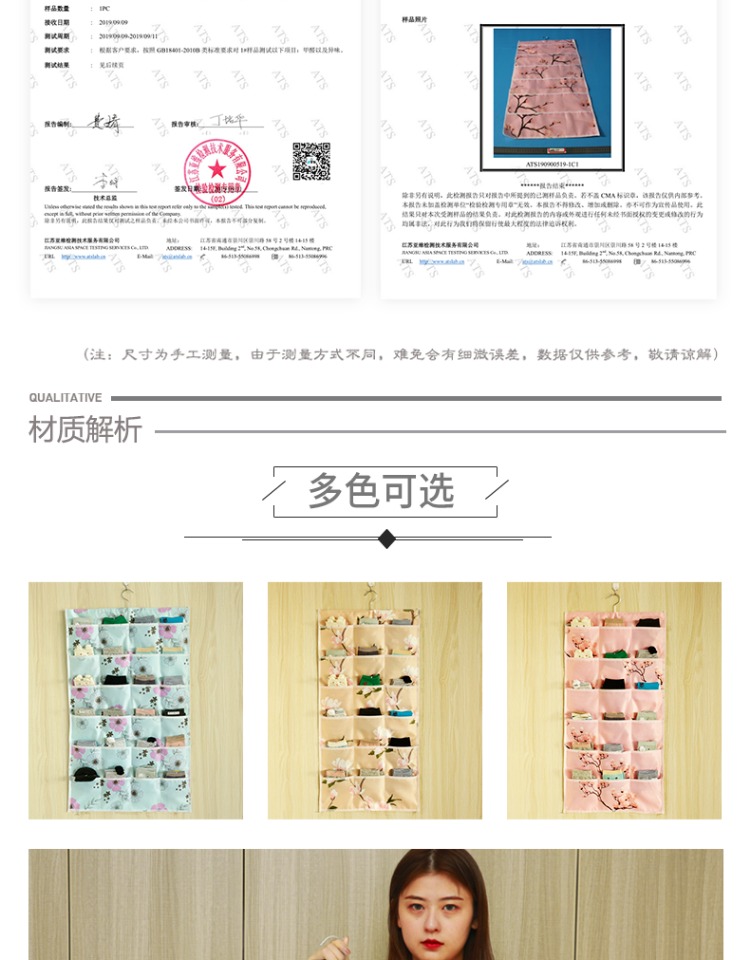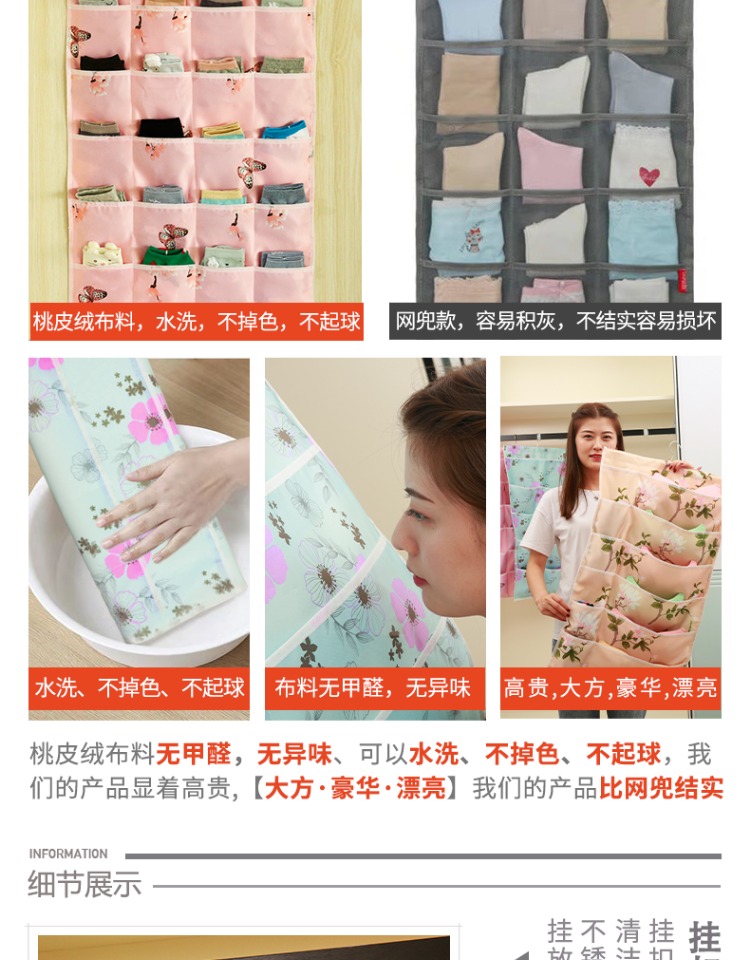 内裤内衣袜子收纳挂袋,精选好材,安全健康,无甲醛,无异味,可水洗、不掉色、不起球,高贵、大方、豪华、漂亮,家庭收纳神器