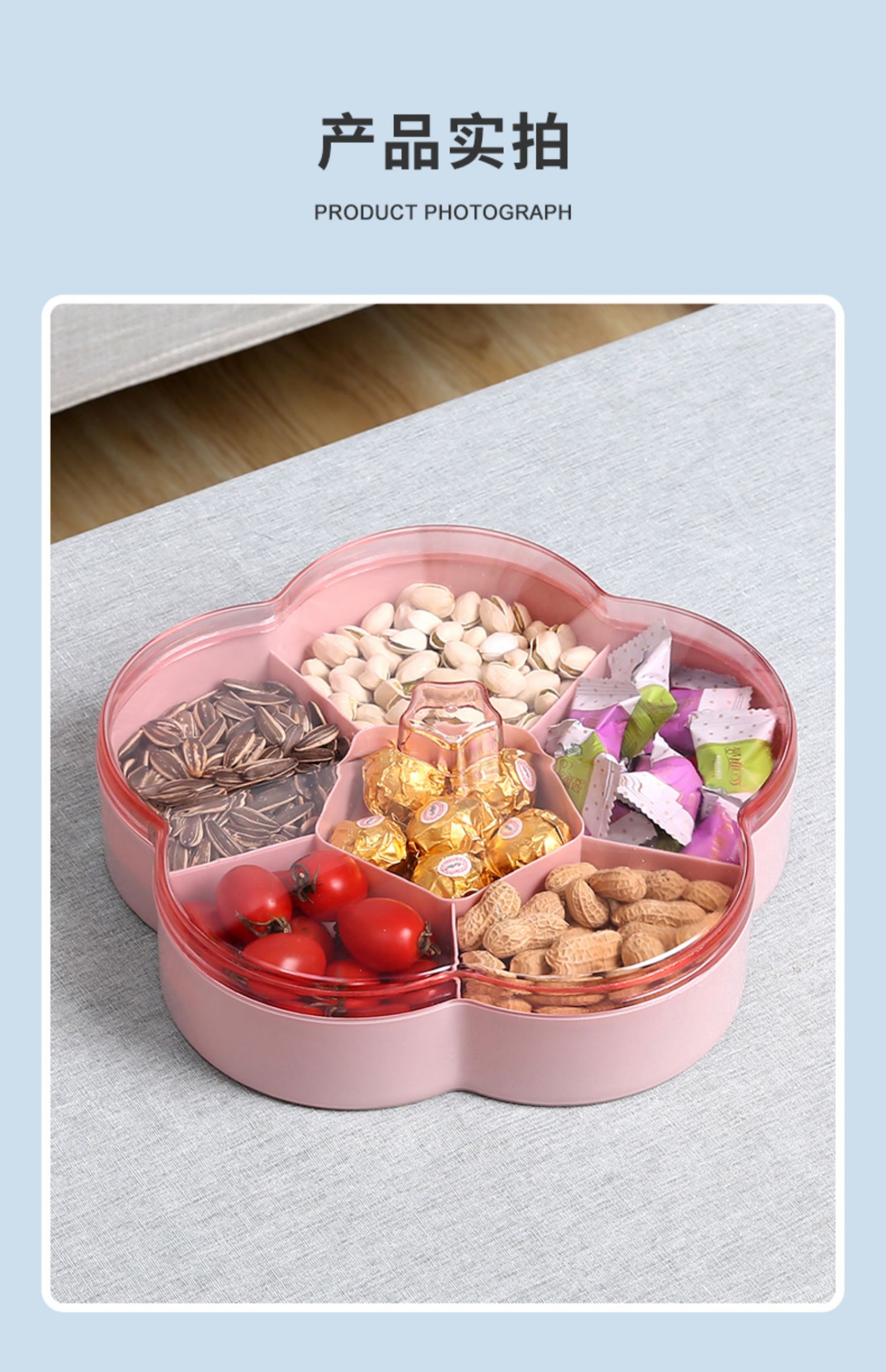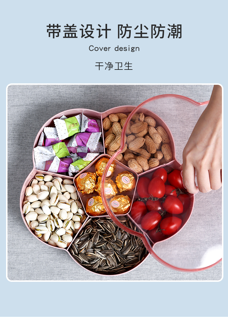 过年啦~糖盒买起来~居家必备!独立六格,带盖密封,健康材质,坚固耐用,居家生活必备,多功能分格设计,分放不同干果,坚果,零食,时尚美观!拍后6个选项!