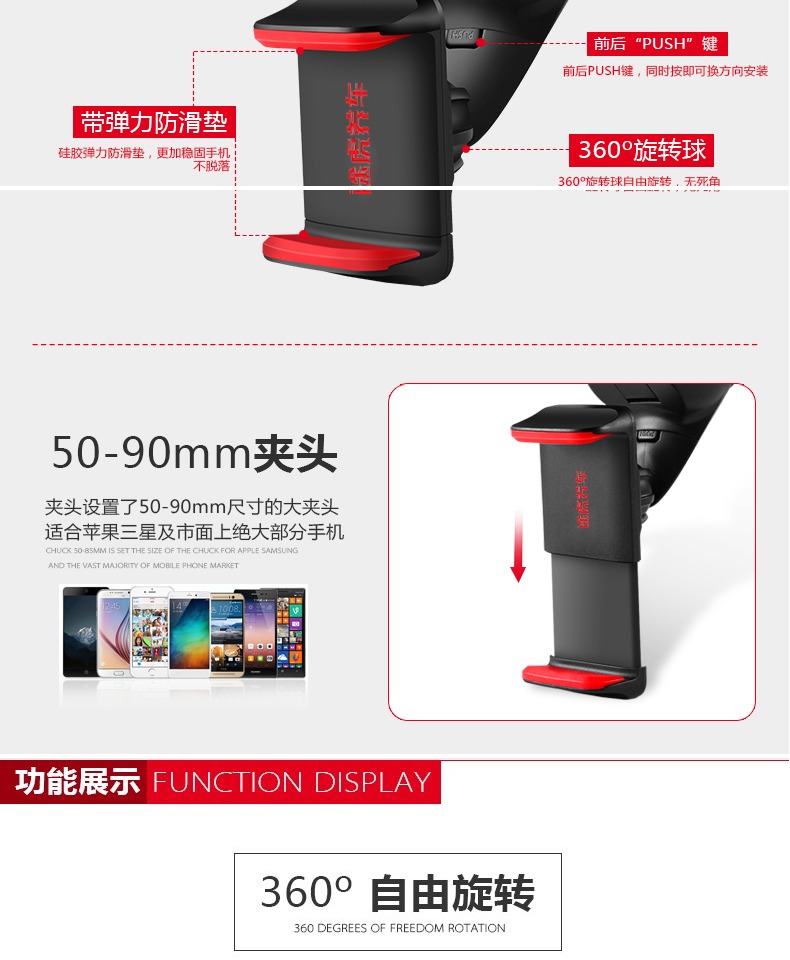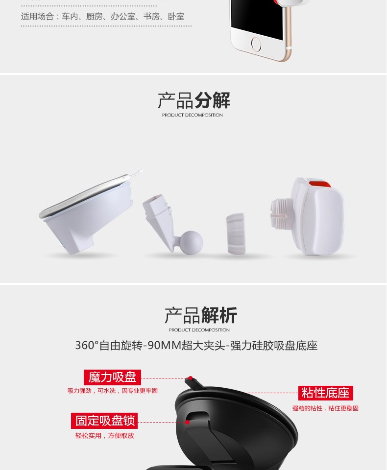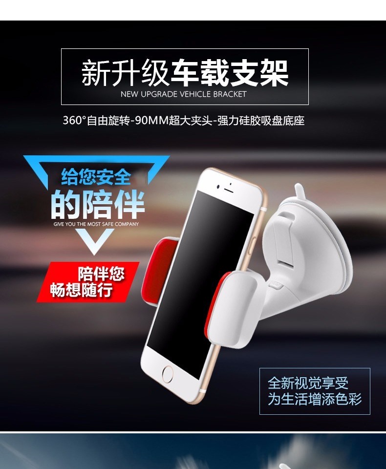 新升级车载支架360°自由旋转-90MM超大夹头-强力硅胶吸盘底座,给您安全的陪伴,畅想随行,全新视觉享受,为生活增添色彩,赠运费险!!!