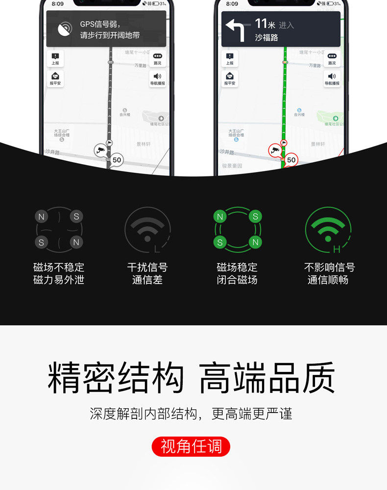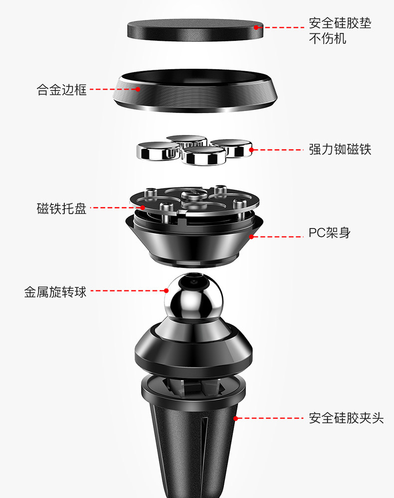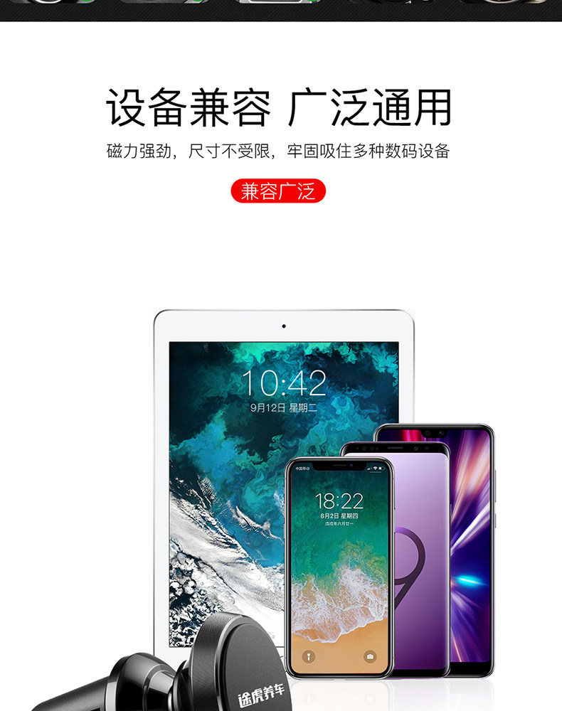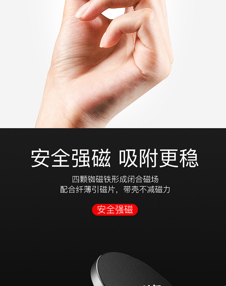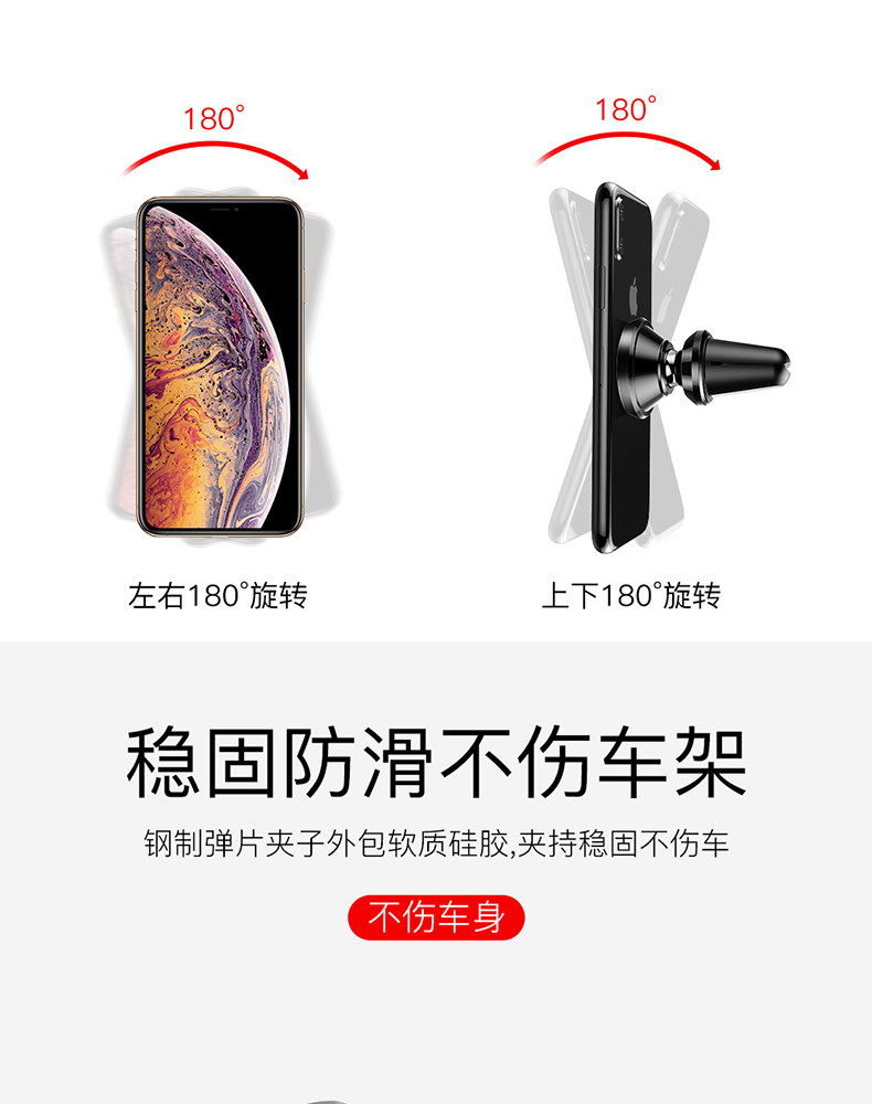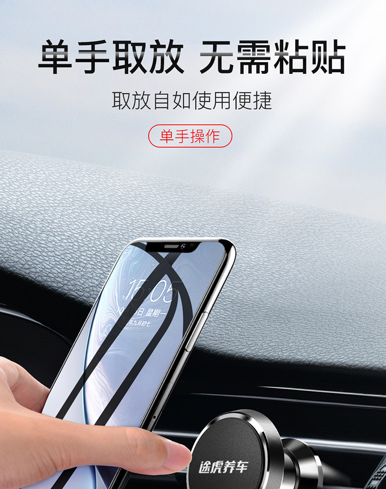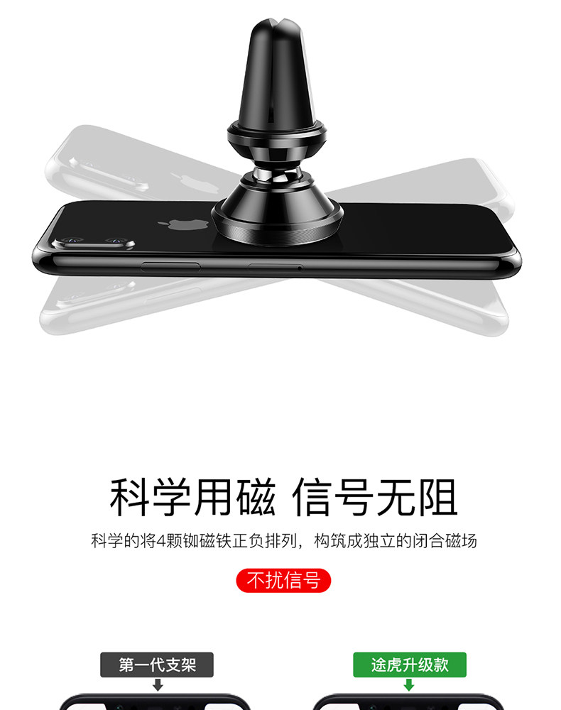 单手取放无需粘贴,迷你小巧,经典百搭,多倍磁力,吸附稳固,信号无阻,兼容匹配,广泛通用,360度自由旋转,加大底座,稳稳当当,稳固防滑,不伤车架!赠运费险
