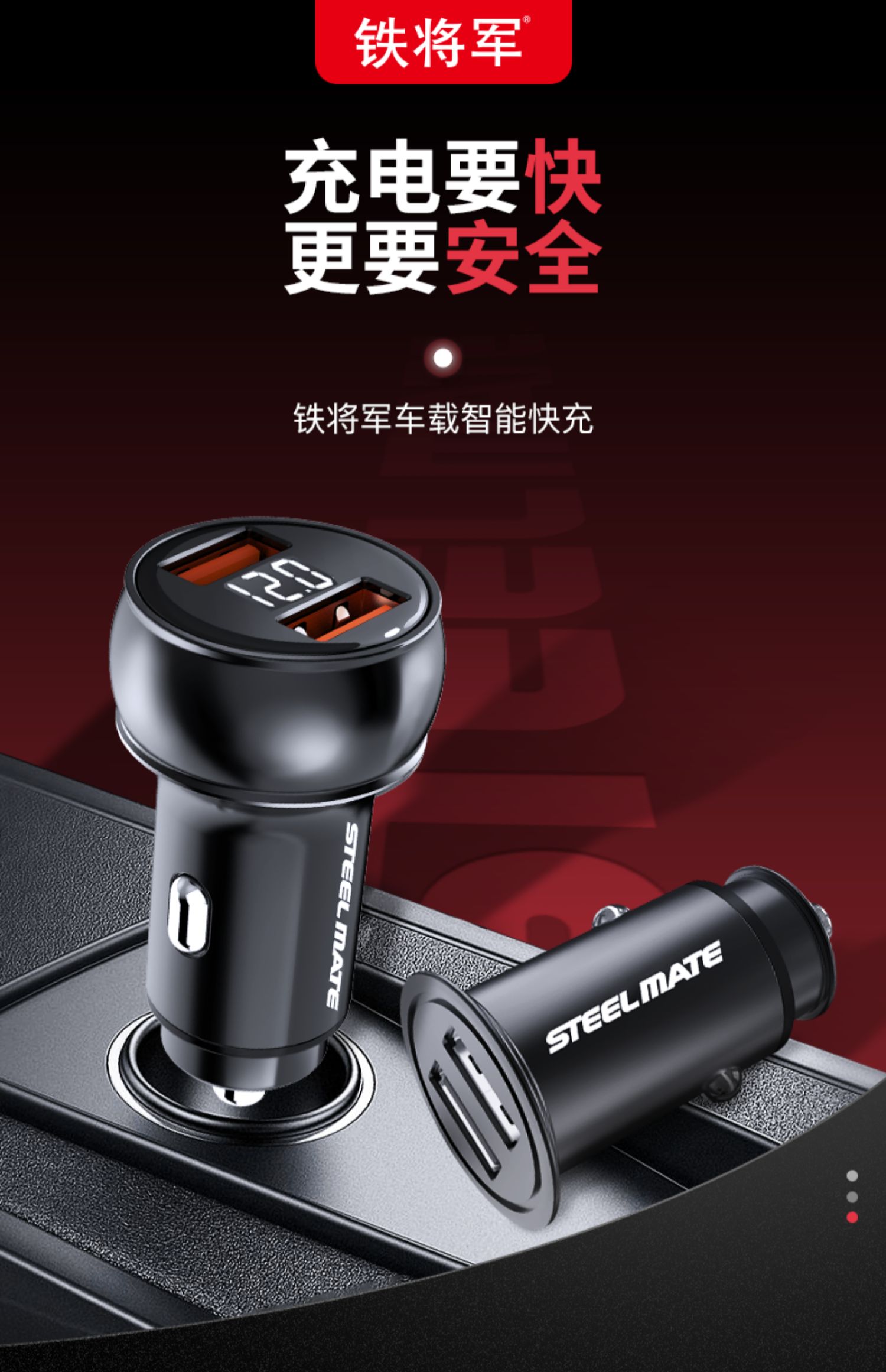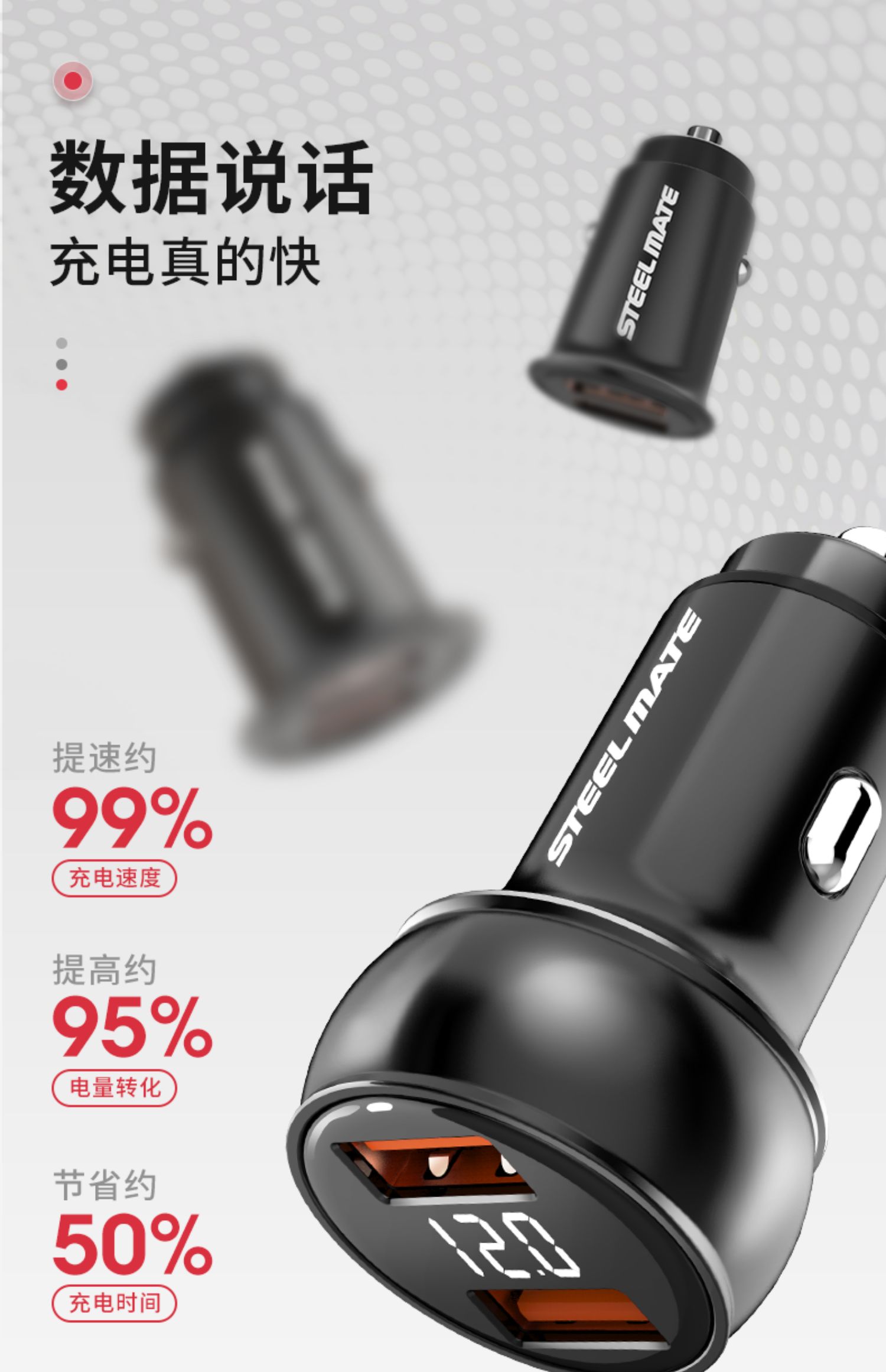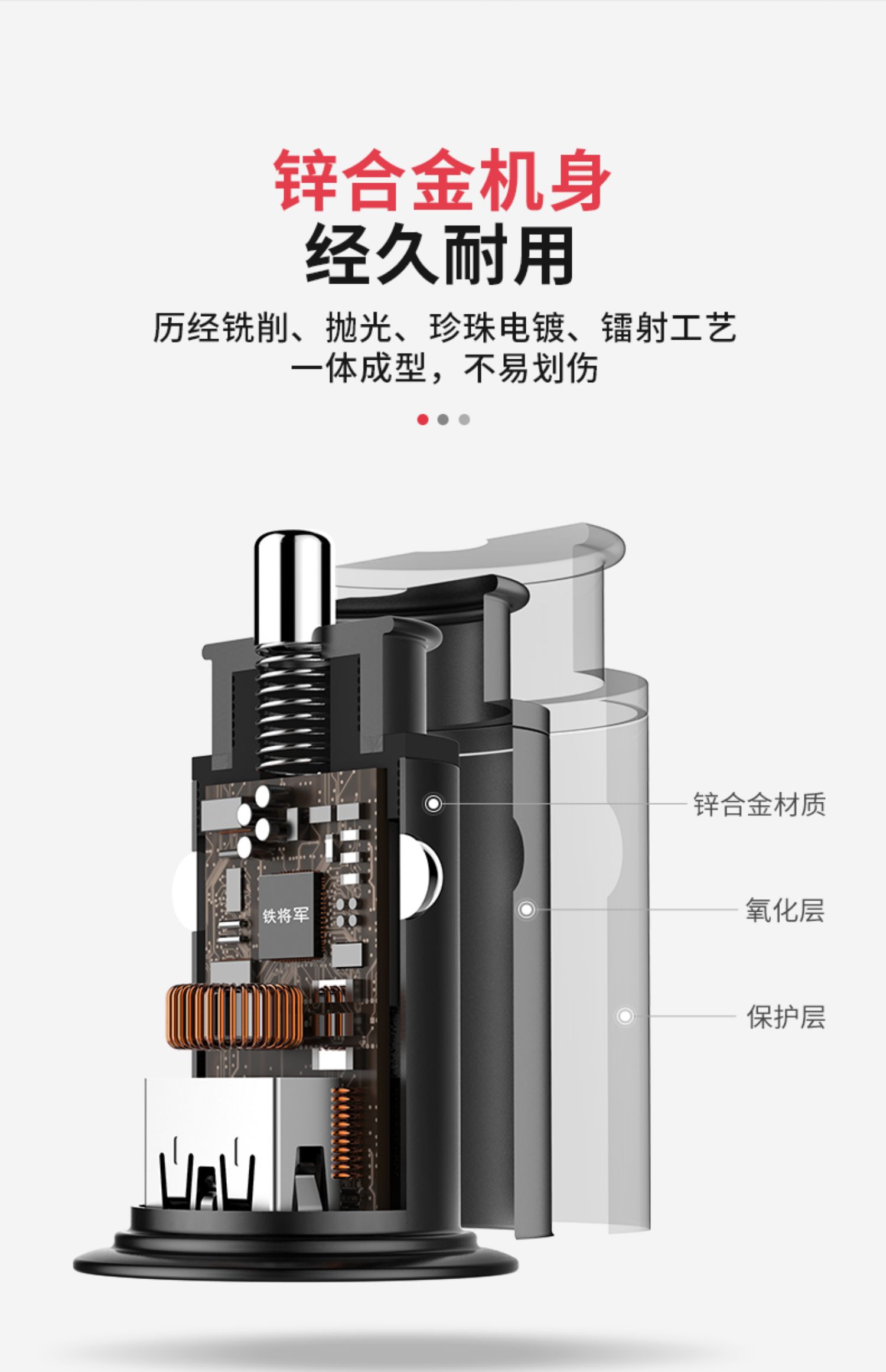 全金属车载充电器,双usb接口,智能适配快充,耐高温不发烫,自动侦测阻燃爆,市面主流车型通用,在车上也能尽享华为快充