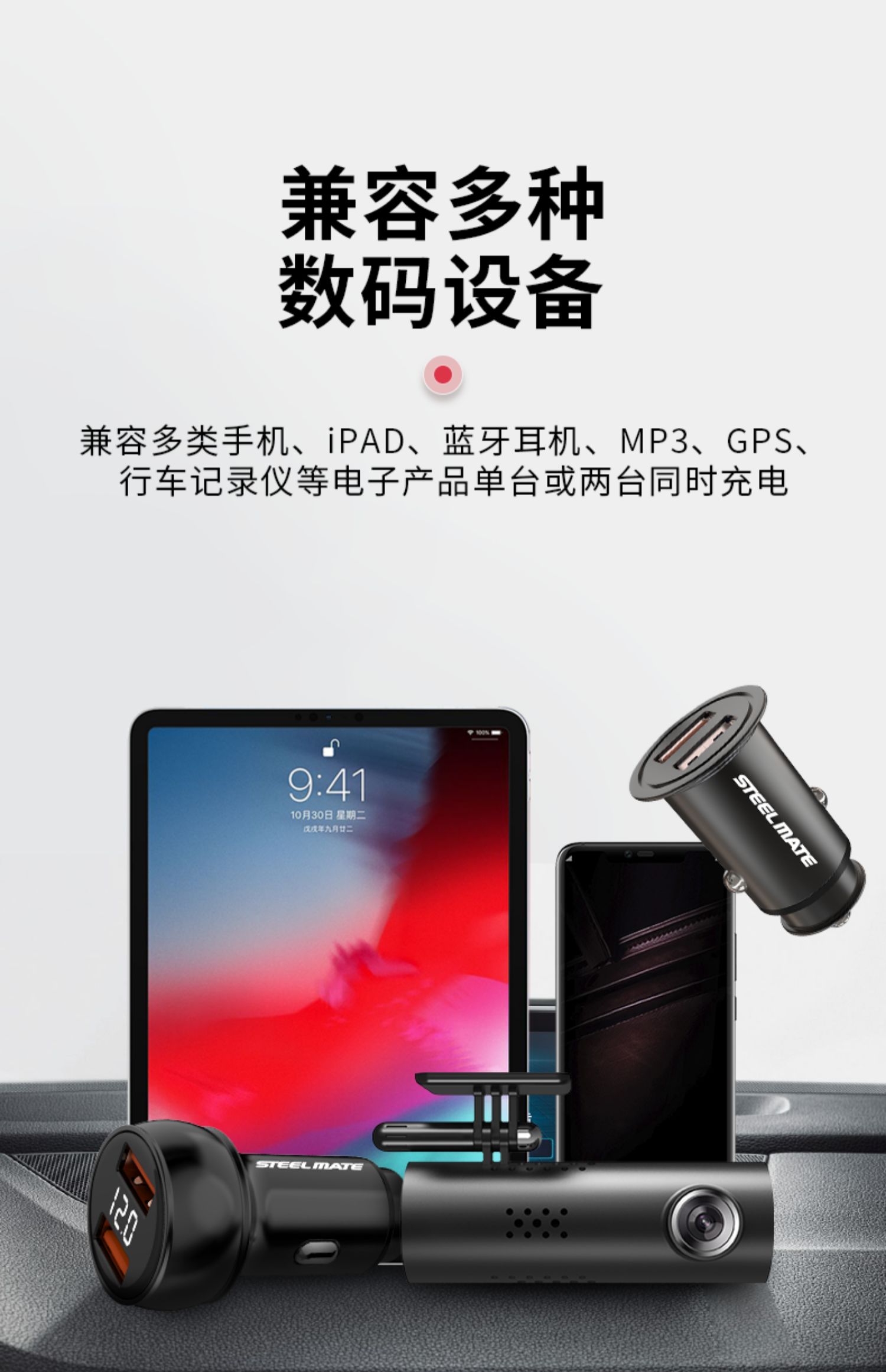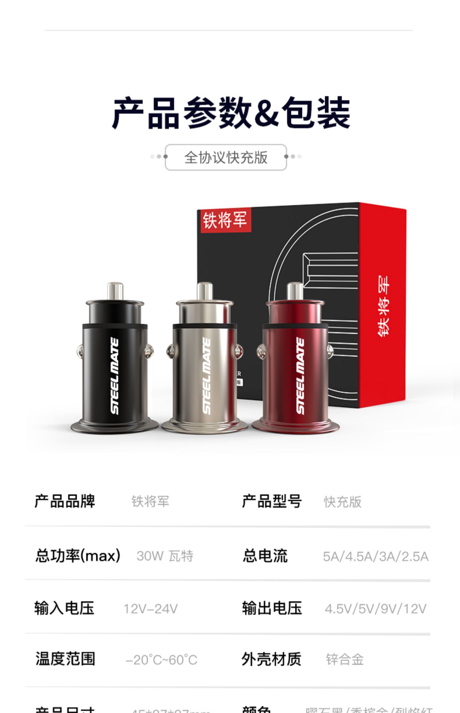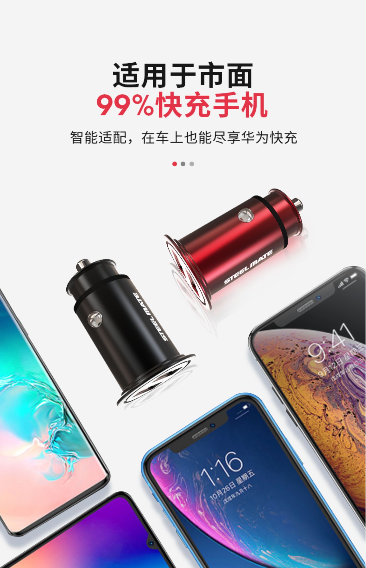 全金属车载充电器,双usb接口,智能适配快充,耐高温不发烫,自动侦测阻燃爆,市面主流车型通用,在车上也能尽享华为快充