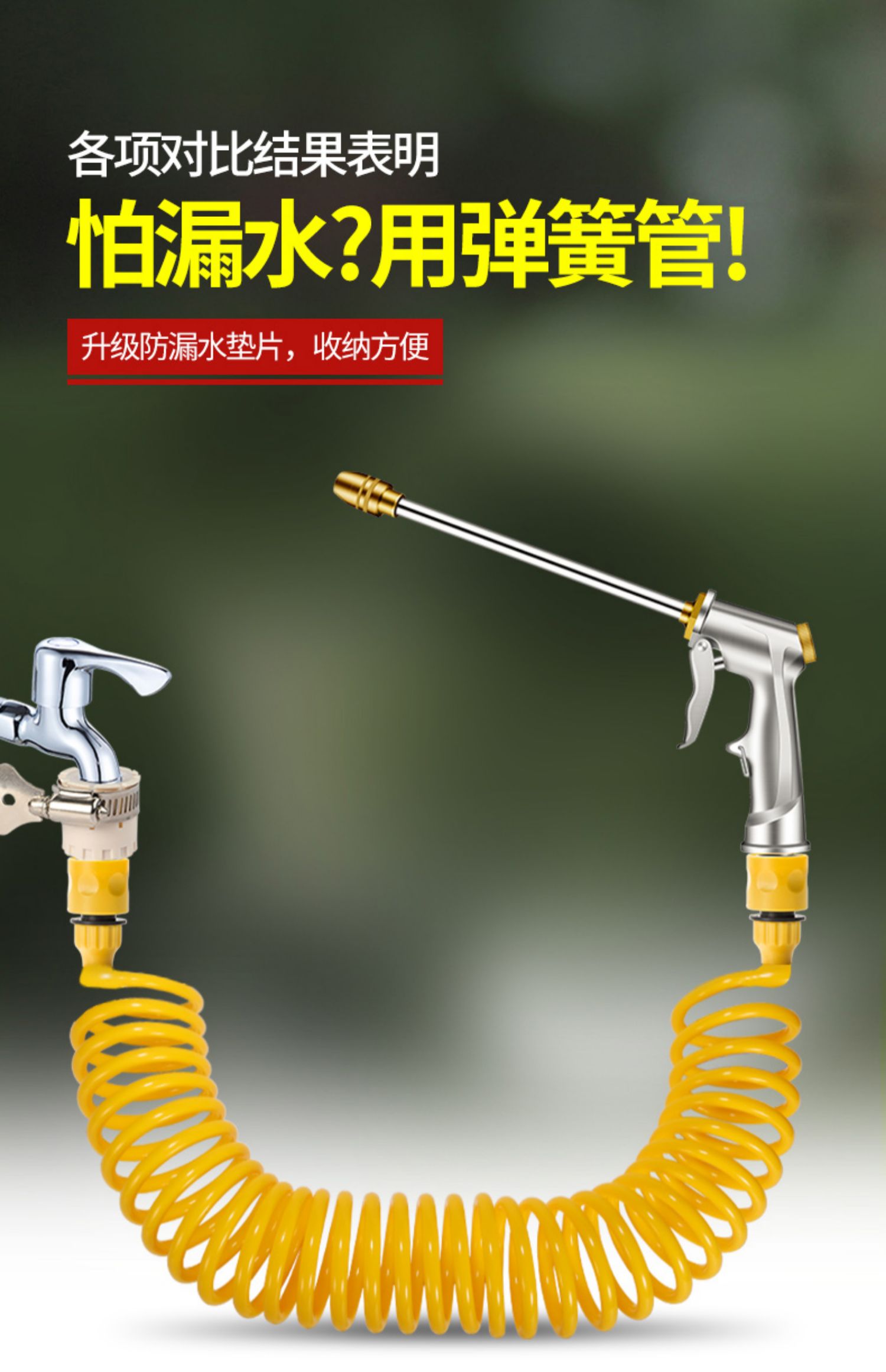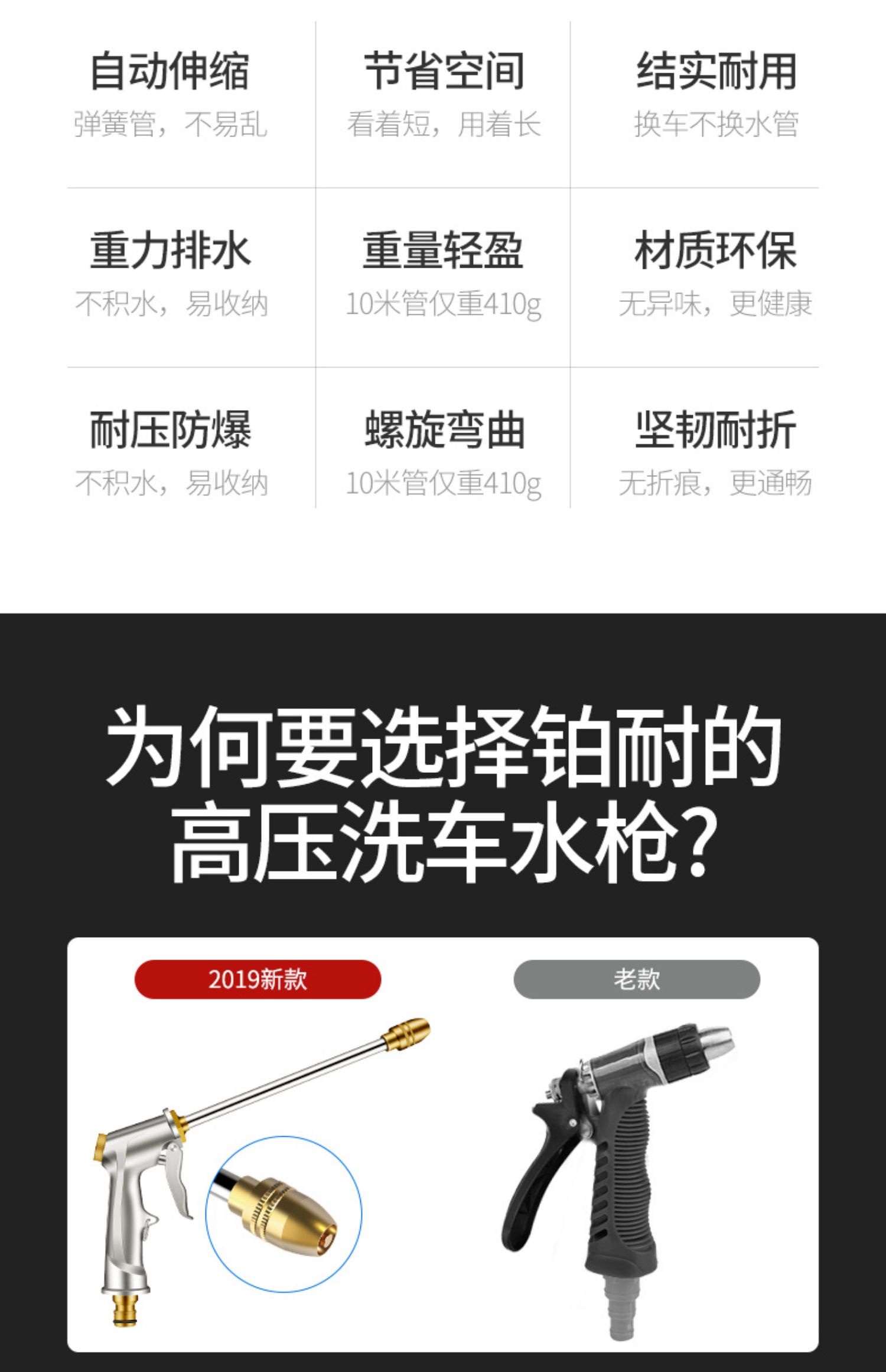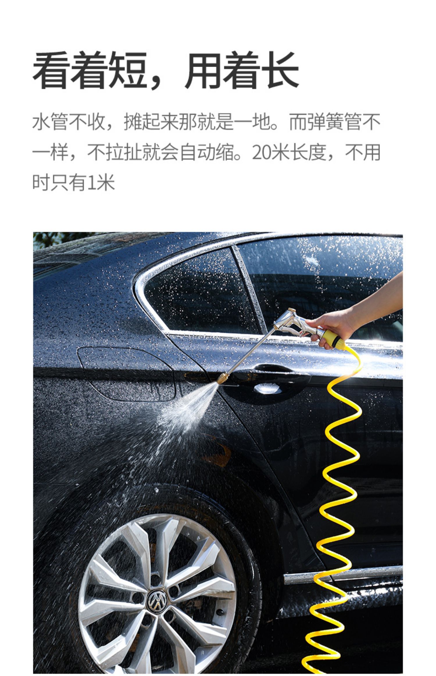 家用浇花洗车神器,可伸缩长度,精工品质,体积小,重量轻,收纳携带方便,自动增压,多种喷水转换,抗日晒,抗扭曲,不打结,冬天不硬化,有车一族必备洗车神器!