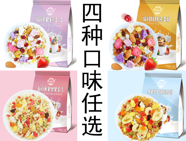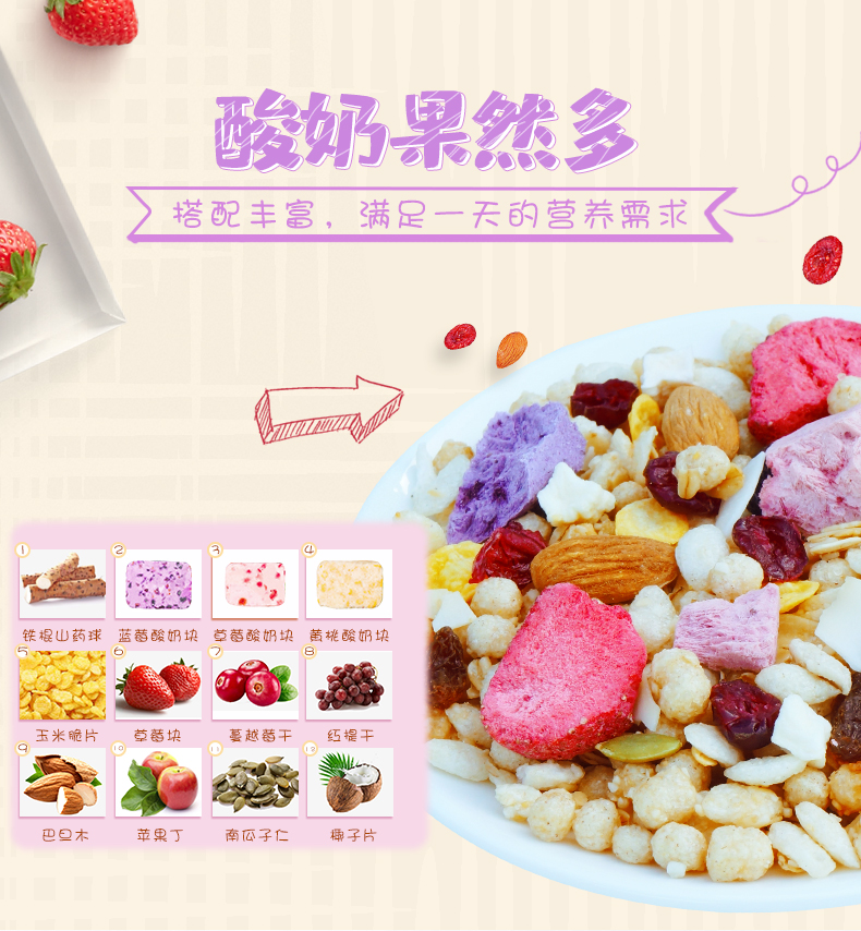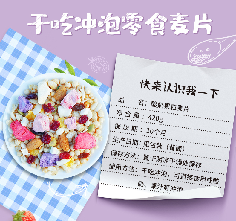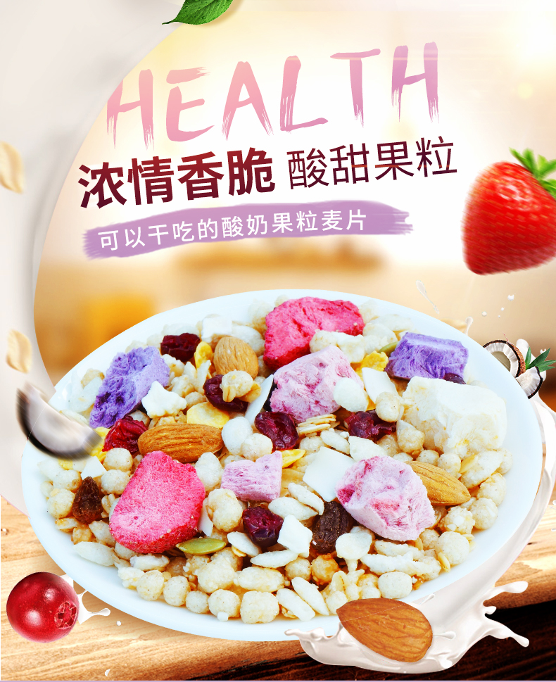 【可干吃的酸奶果粒麦片】无添加防腐剂和色素,可以干吃+冲泡,超100万+活性乳酸菌!香甜美味能量早餐,让你元气满满一整天!