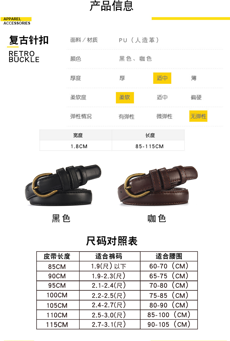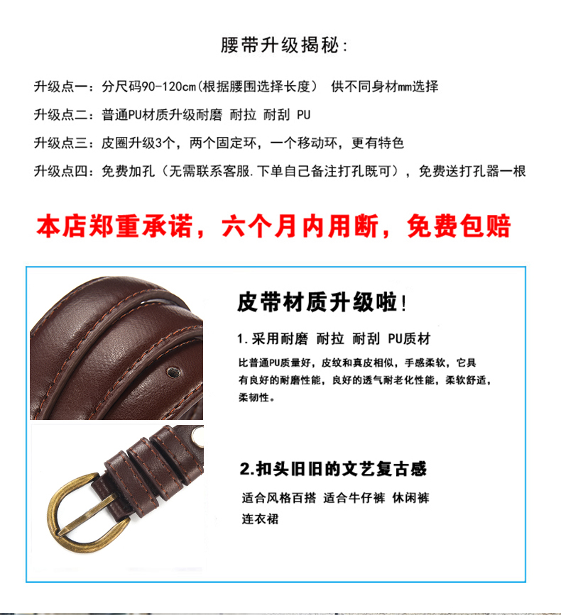 材质全面升级,精选优质PU皮质,柔软耐用,抗腐蚀性好,实心合金扣头,不脱线,用着放心!