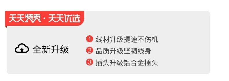 血亏冲销量,精选优质进口材质,坚韧耐用,纯铜线芯提速50%高效输出,效率大幅提升,让等待不再漫长,充电更省时!让吃鸡更畅快!