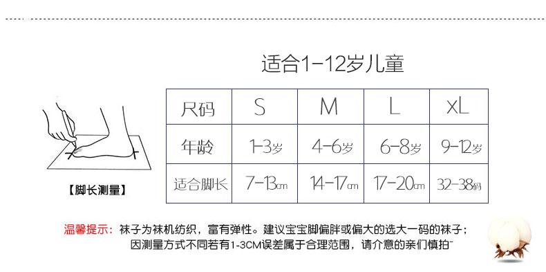 纯棉童袜,秋冬厚款,A类0甲醛,质量非常好,有弹性,不勒脚,没有线头,透气舒服,倍加呵护宝宝的娇嫩肌肤。