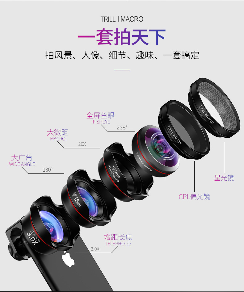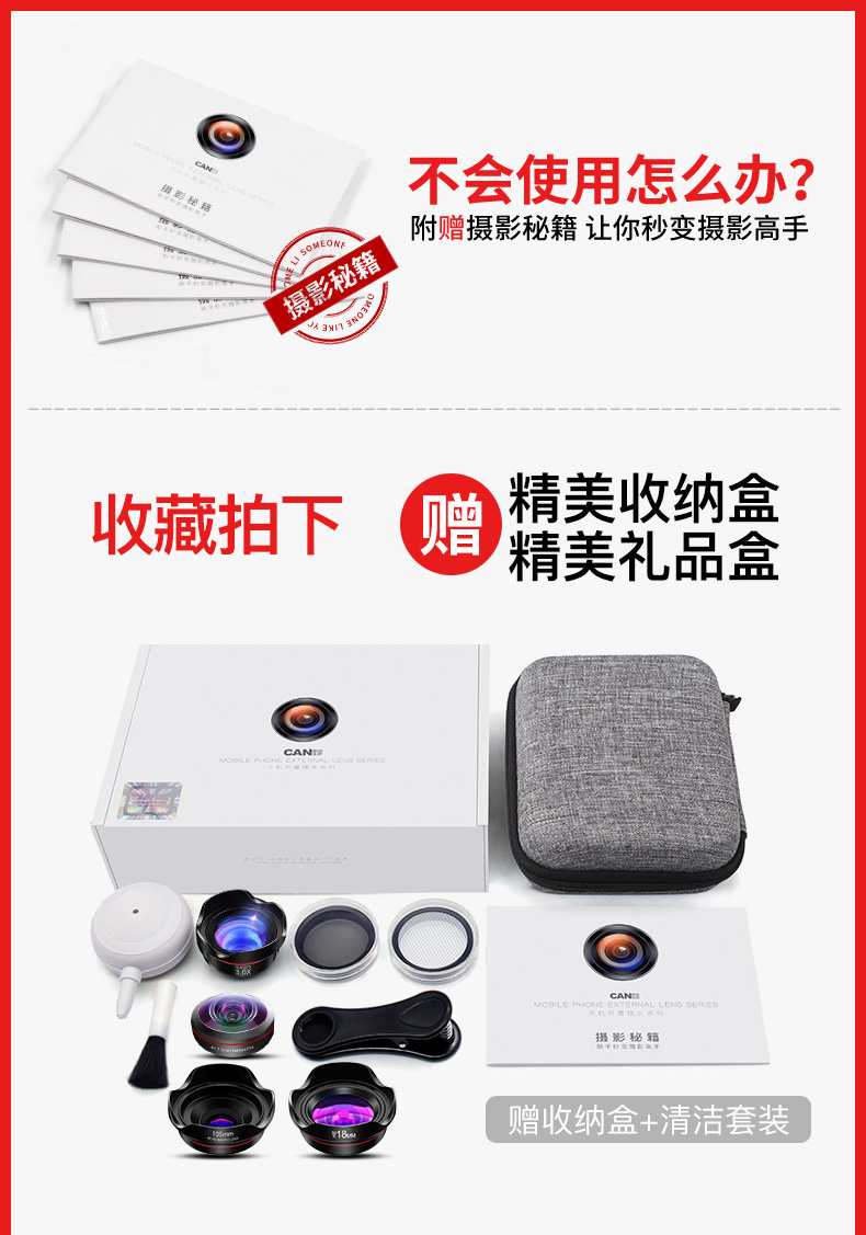 【亏本清库存】手机通用趣味鱼眼镜头,单反拍照外置高清摄影相机,4K无畸变高清超广角,单反手机通用+抖音同款。【赠运费险】
