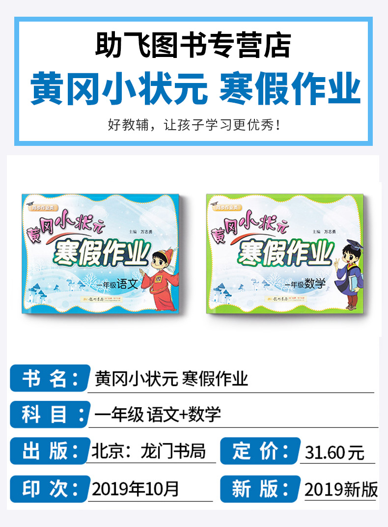 【助飞书店】【买一送二,实发四本】黄冈小状元寒假作业一年级语文+数学,名师归纳,全国通用,清洗印刷,保护视力,内容丰富,题型有趣,百所名校特高级教师鼎力推荐,让你的孩子赢在起跑线上!