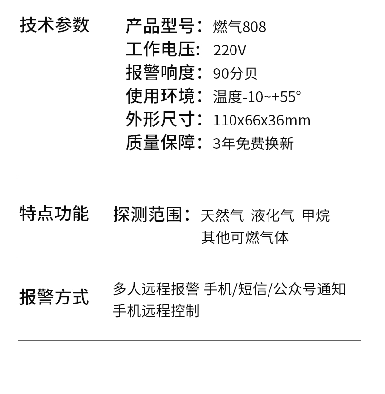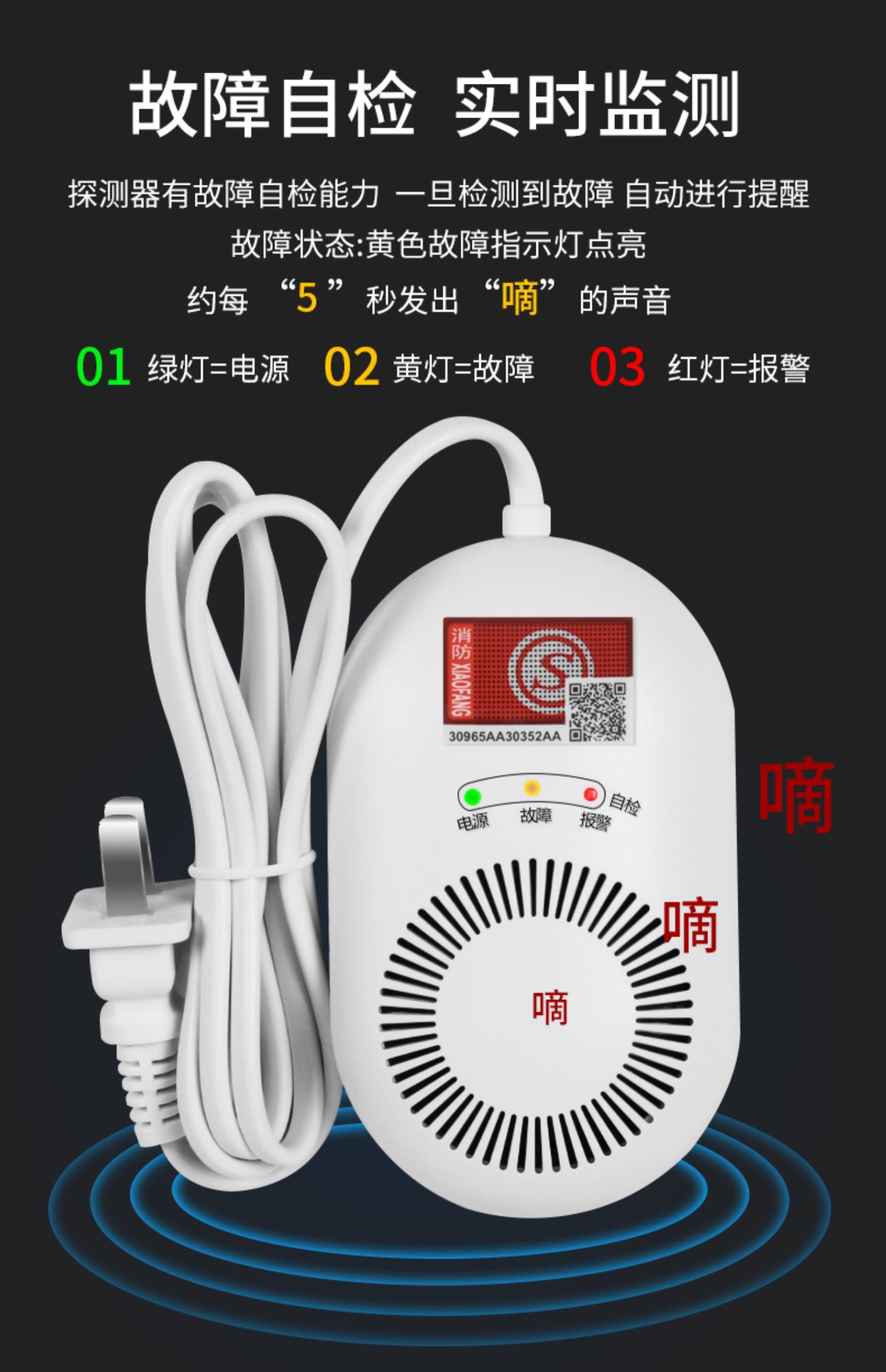 【三年质保,终身维修】燃气报警器~感应灵敏,消防3C认证,天然气、煤气、液化气、探测警报,商用家用都是不错的选择~