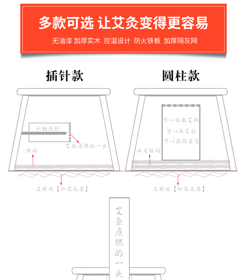【忠艾堂】家用无油漆实木全身艾灸盒