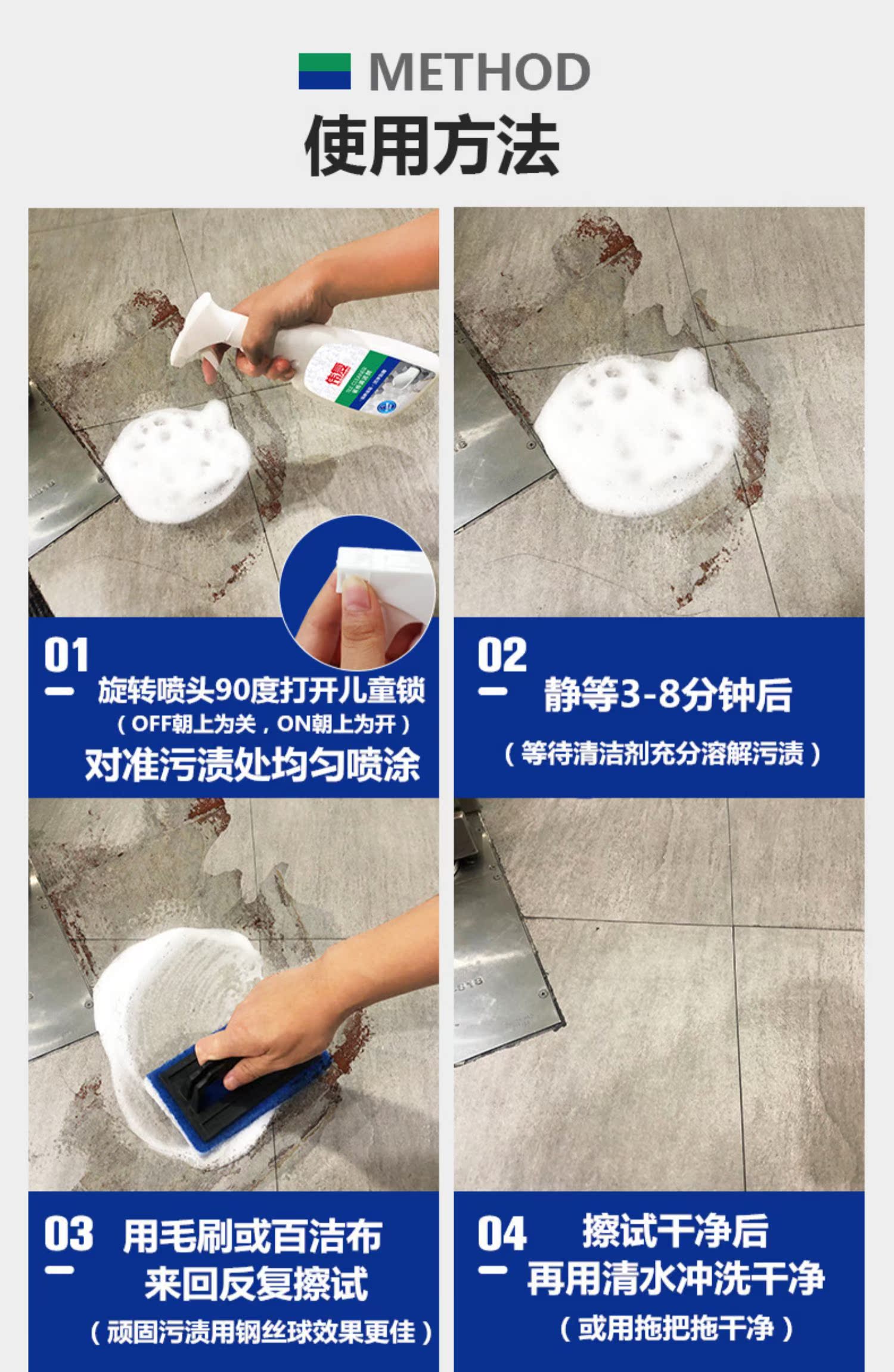 【超大瓶500ML,还送百洁布!】含魔力清洁因子,强力瓦解污垢,特含护瓷配方,不伤瓷砖,一喷一擦,洁净如新!清洁剂,少用点,用好点