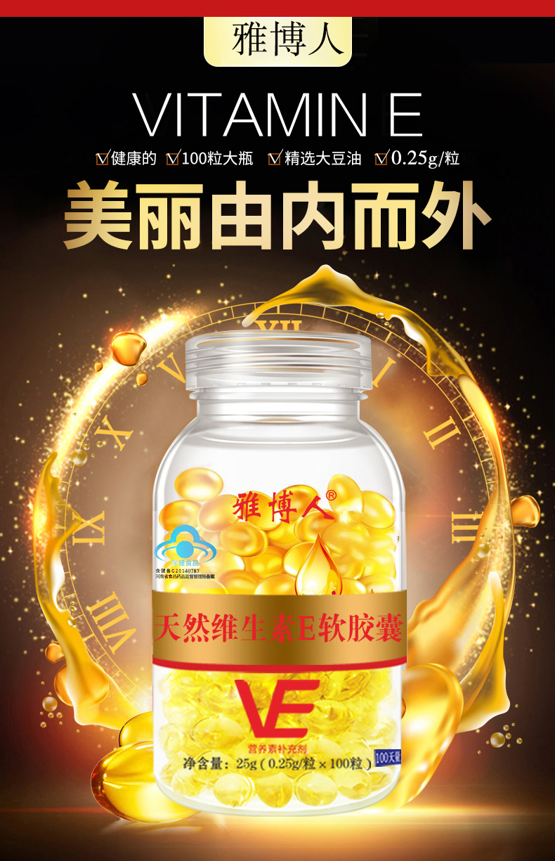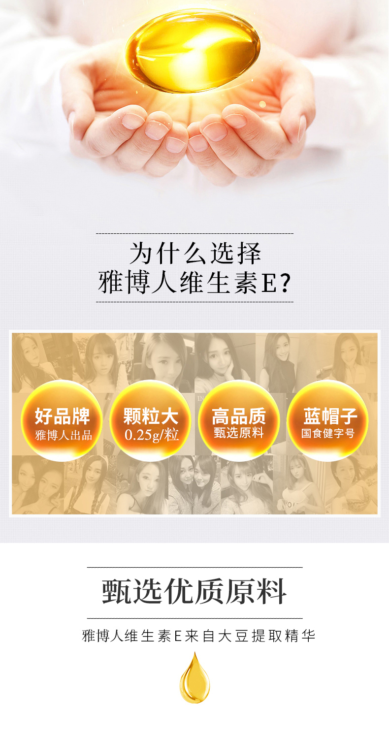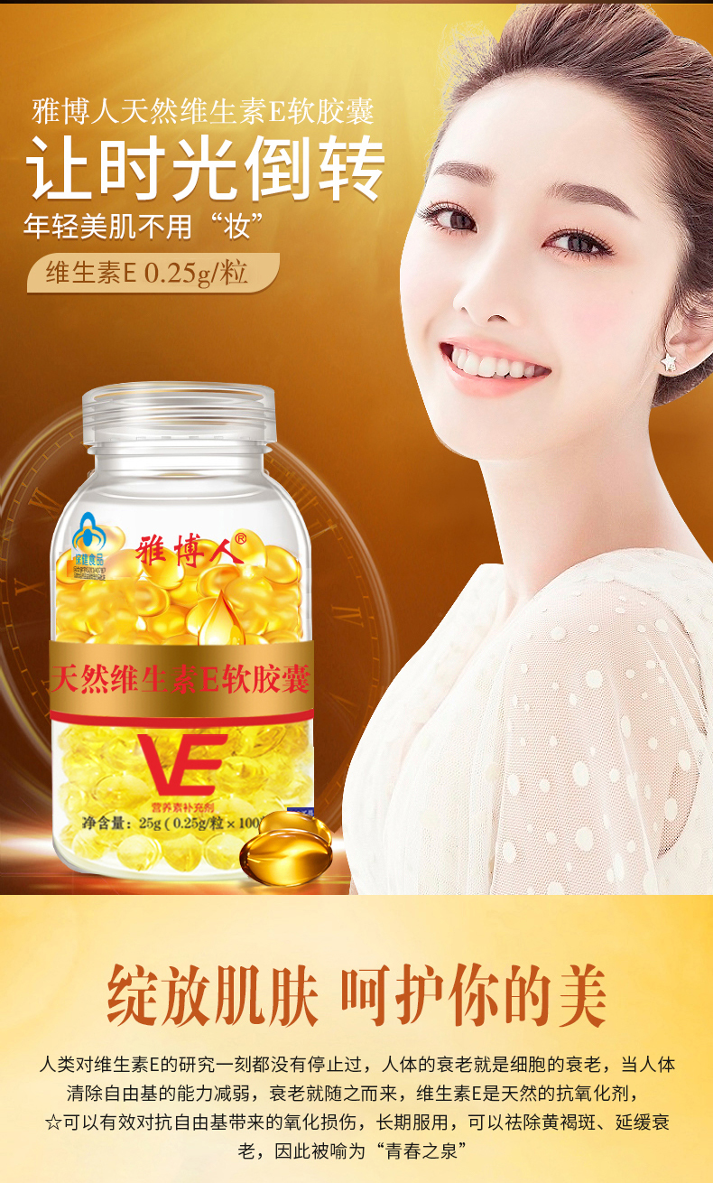 【限时抢购,买2送2】雅博人天然维生素E软胶囊,高科技提纯,纯度高,易吸收,有效补充维生素E,强大的抗氧化作用,内服外涂,抗衰老,美丽由内而外的散发出来哟!