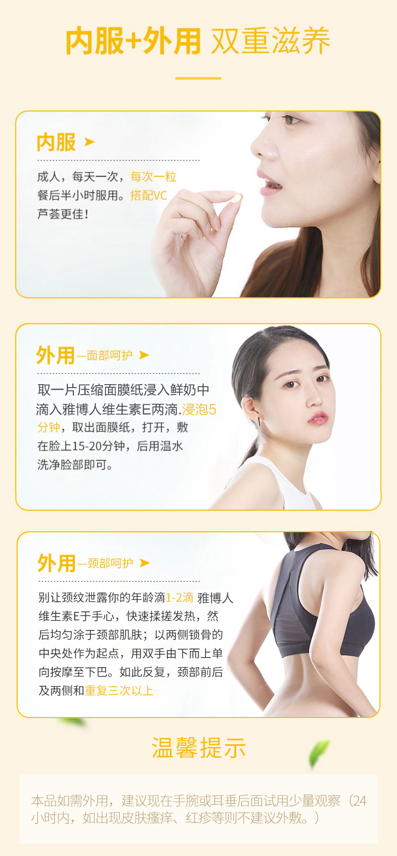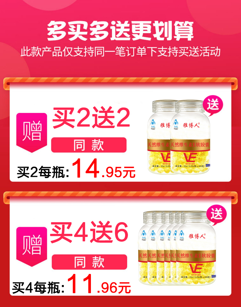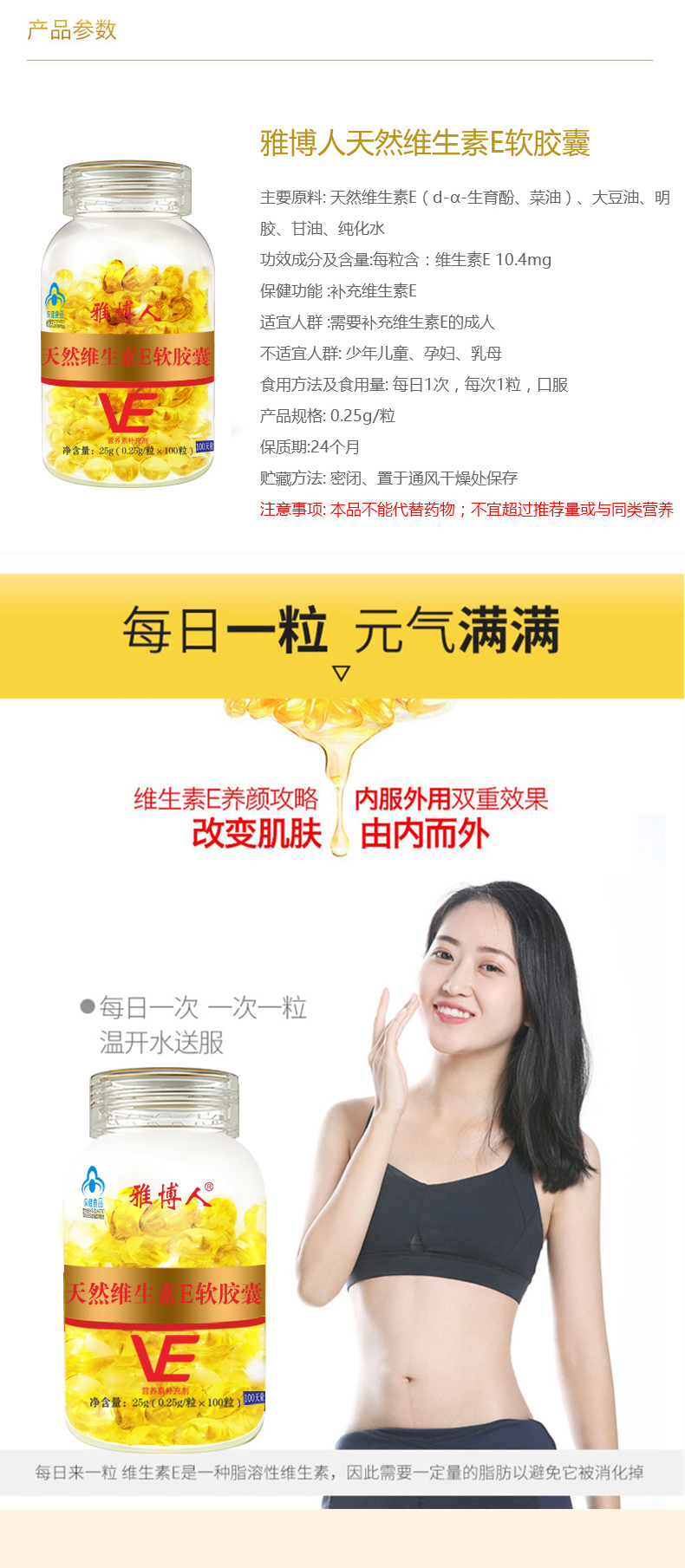 【限时抢购,买2送2】雅博人天然维生素E软胶囊,高科技提纯,纯度高,易吸收,有效补充维生素E,强大的抗氧化作用,内服外涂,抗衰老,美丽由内而外的散发出来哟!