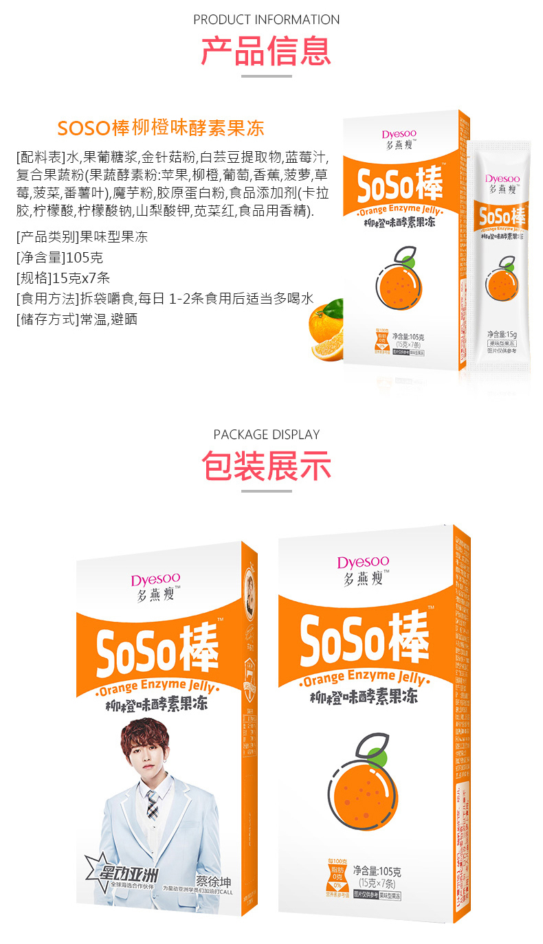 【买二送一,蔡徐坤推荐】多燕瘦柳橙味酵素果冻,20多种有机果蔬,口感酸甜、跟零食一样好吃哦!瘦身纤体治便秘,效果也是杠杠的~多燕瘦塑造美丽的你,让我们成为您的体重管理专家!