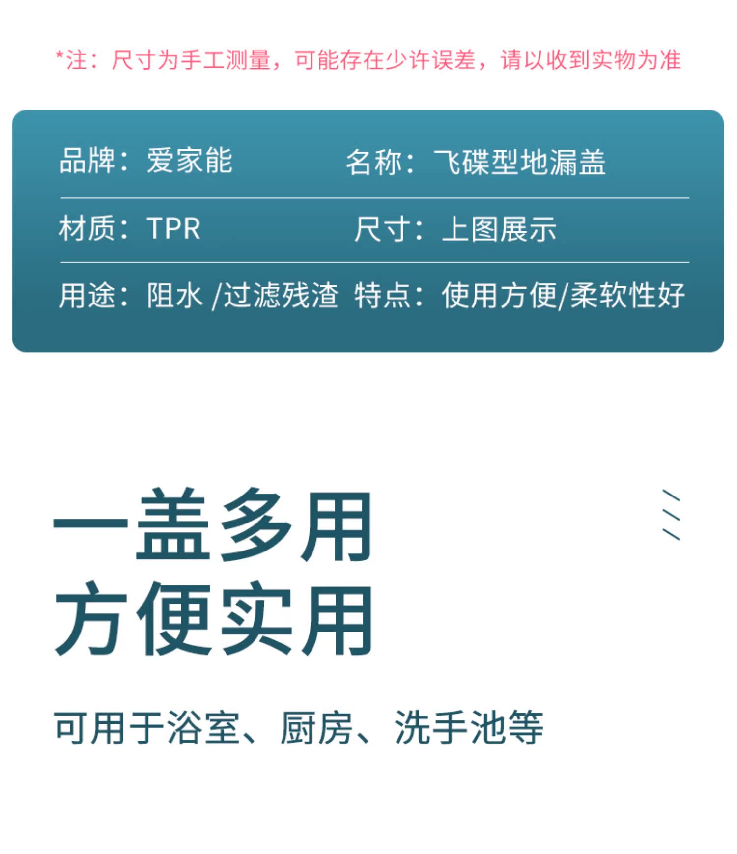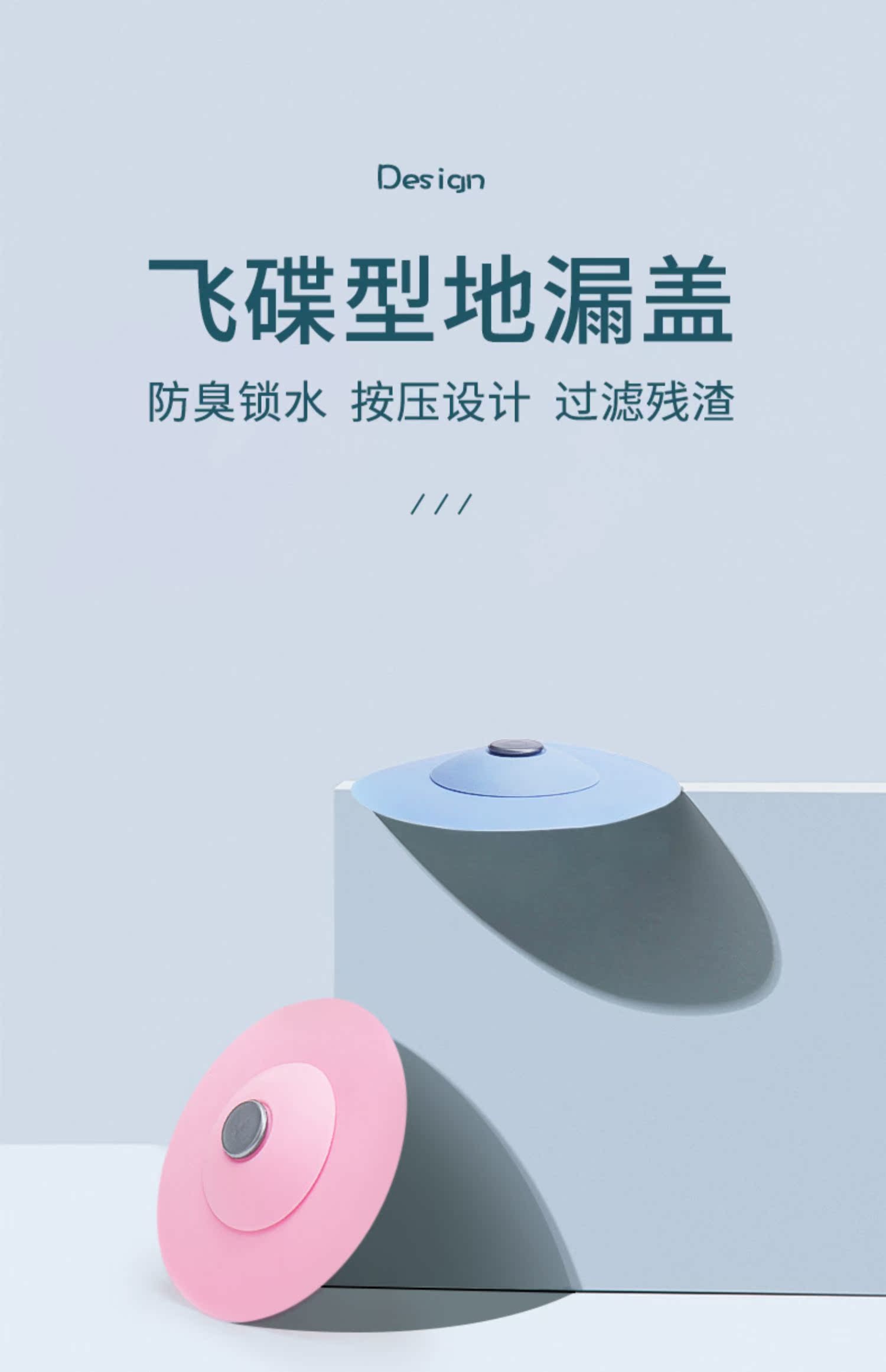 2个装飞碟按压地漏盖,优选TPR材质,美观耐用,吸盘加固,有效隔绝残渣毛发等,防臭锁水,既能漏水又能截住垃圾,下水道防堵救星!