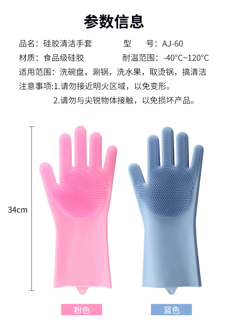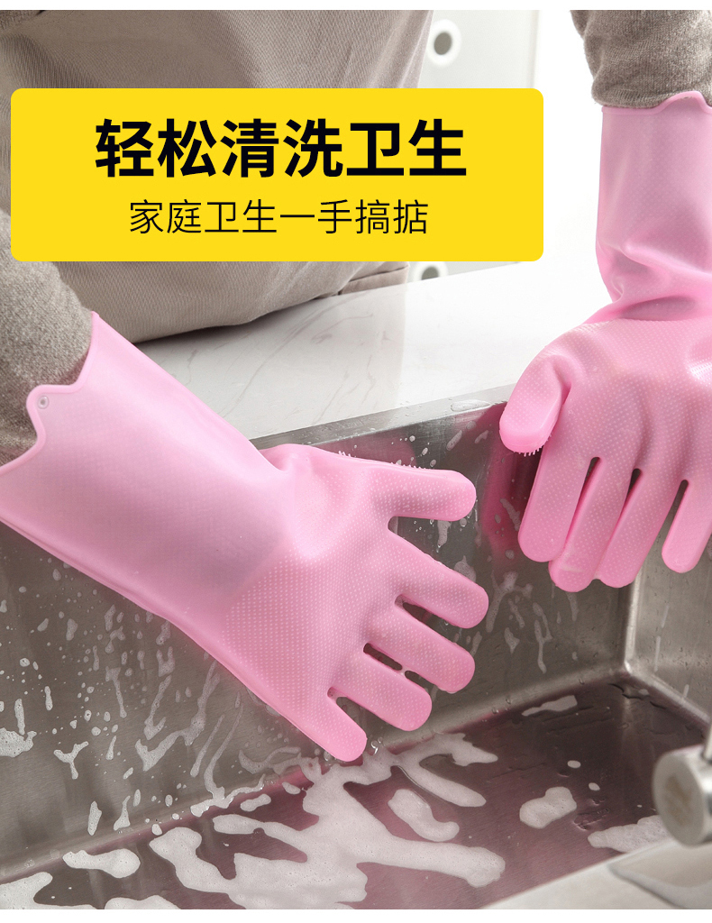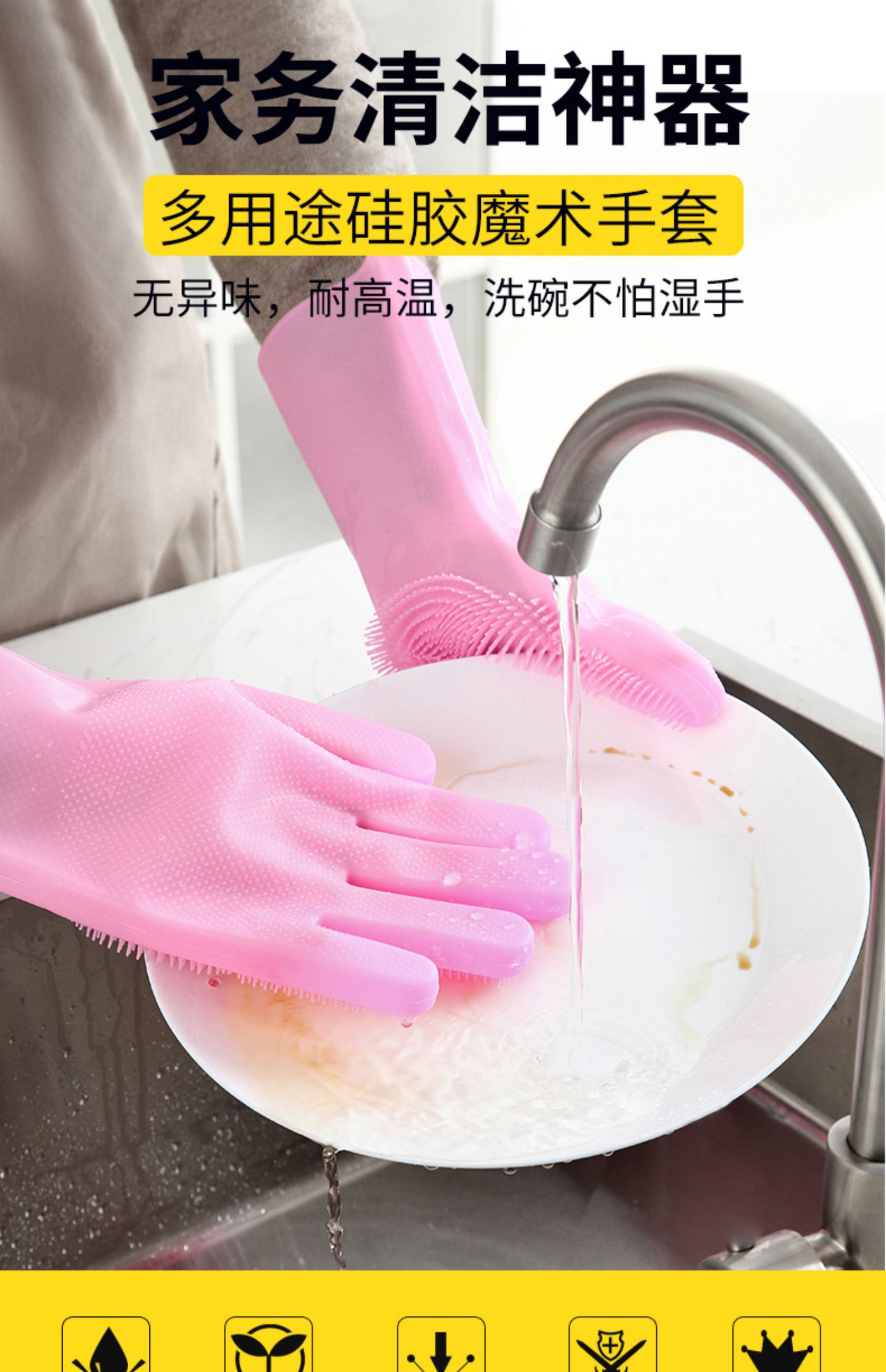 魔术硅胶洗碗手套,平滑颗粒设计,防滑耐磨,隔热防烫,3段式刷毛,易起泡,环保硅胶,无异味,多功能用途,洗碗,洗菜,洗衣服,水果等无惧冬天凉水!