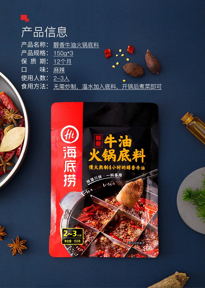 【拍两件!海底捞】鲜香火锅底料300g