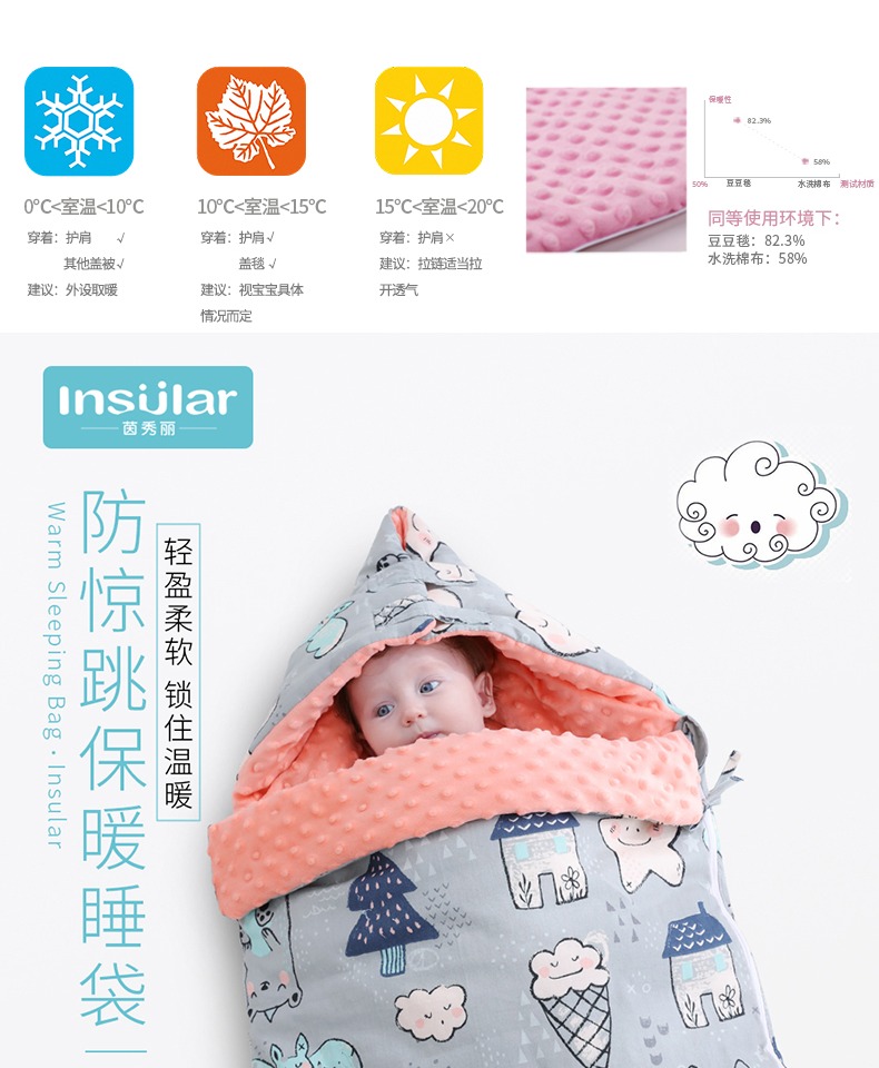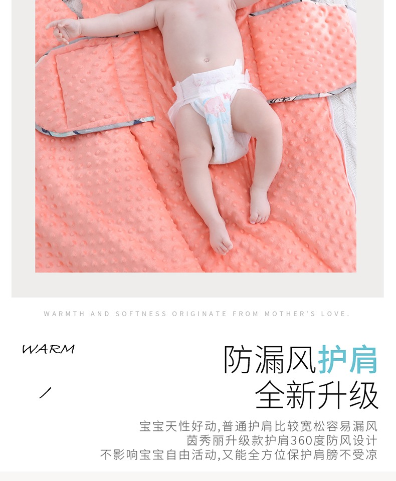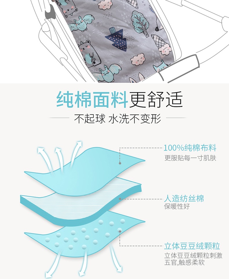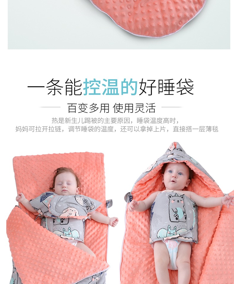 纯棉婴儿专用睡袋,轻盈柔软,锁住温暖!3D按摩球,给与宝宝轻柔的触摸感,如同妈妈一直陪伴左右,大空间,舒张随心,无束缚!宝宝的睡眠更舒适,宝妈必备!【赠运费险】