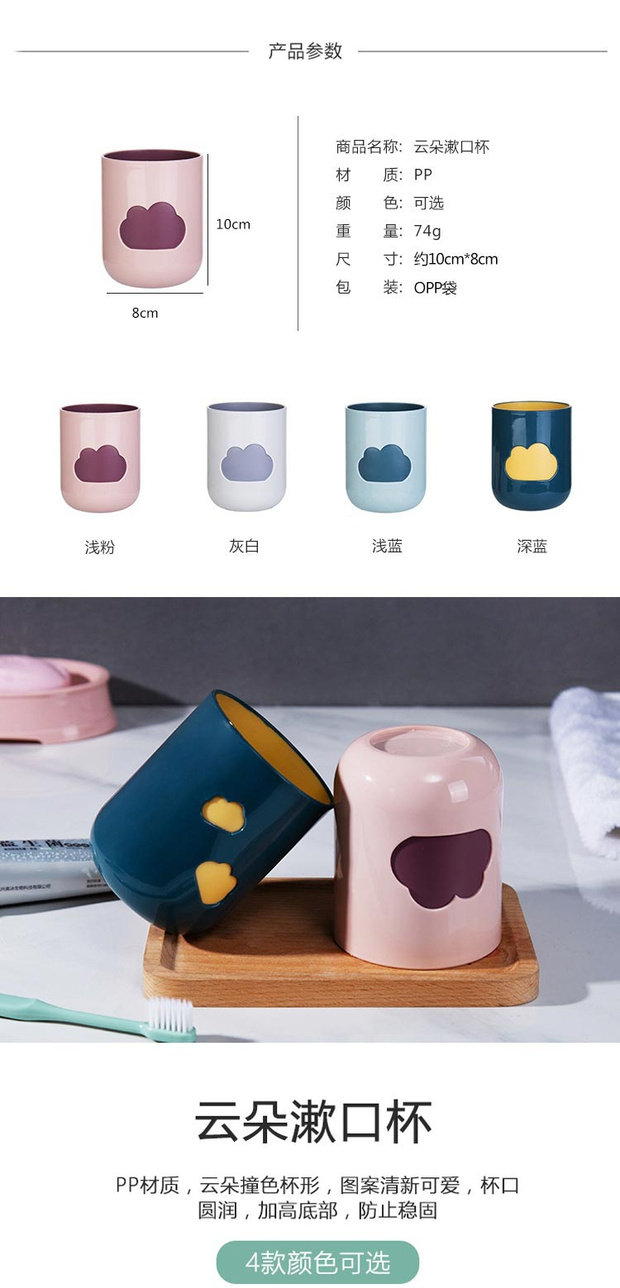 【北欧风】撞色云朵杯,撞色搭配,北欧风格,PP材质,结实耐用摔不烂,撞色云朵漱口杯,图案清新自然,杯口圆润,加高底部,防止稳固,多色可选,享受美好生活【赠运费险】