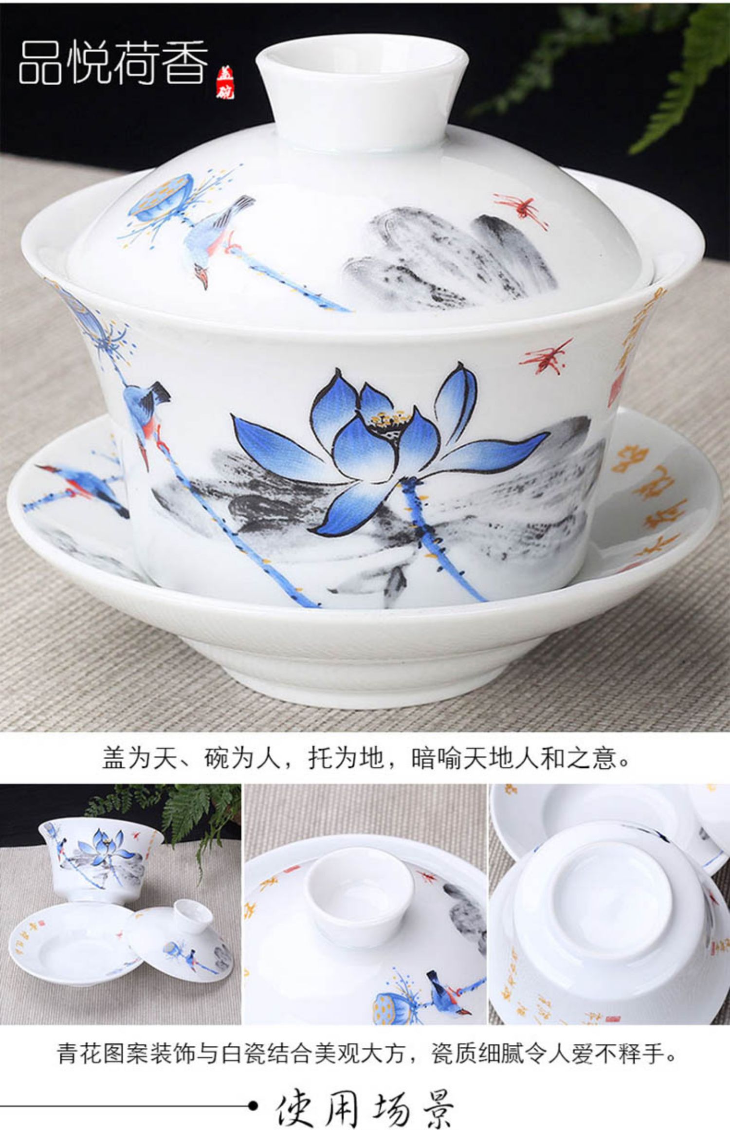 【1碗+6杯】图案装饰与白瓷完美结合,美观大方,瓷质细腻令人爱不释手,古朴又清新!用它喝茶是一种享受~