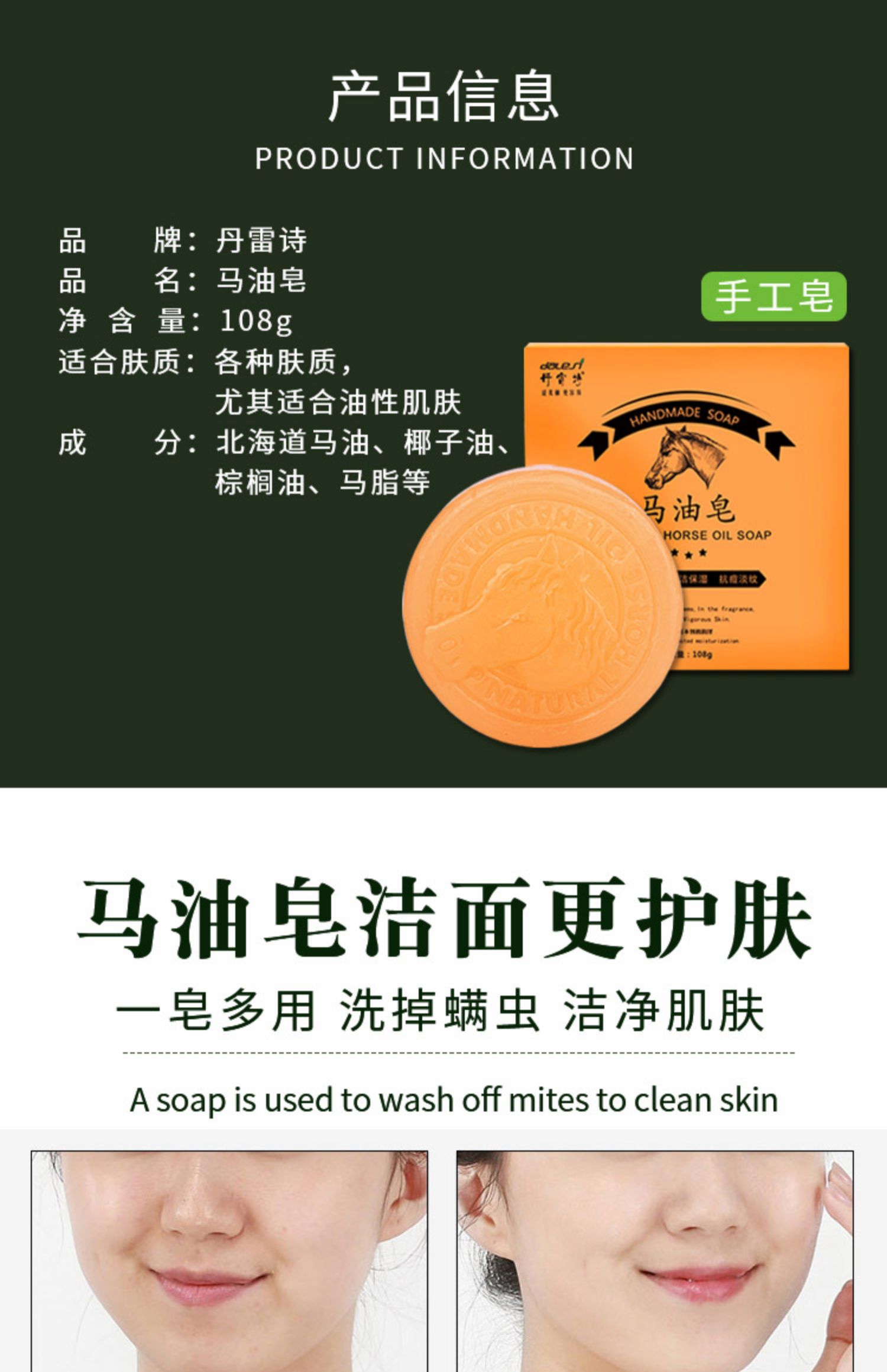 丹雷诗马油皂除螨祛痘去螨虫控油去黑头