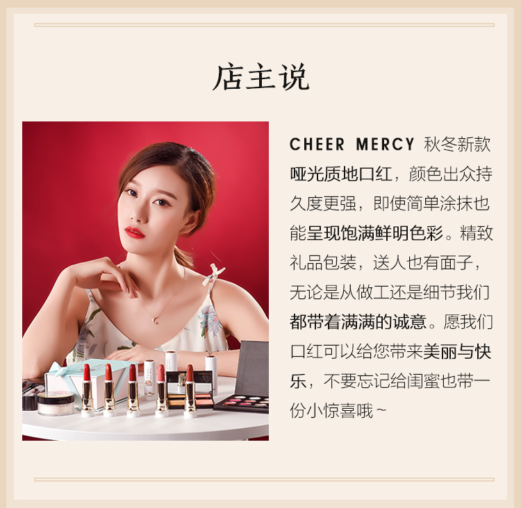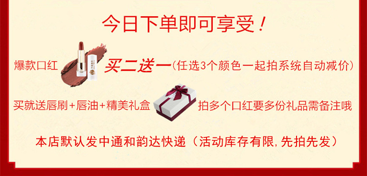 持久绚丽,轻薄透气,经营透亮,打造出动人唇妆,妆效持久易卸,自然原色与个性设计,让人毫不犹豫爱上它,快来抢呀【赠运费险】