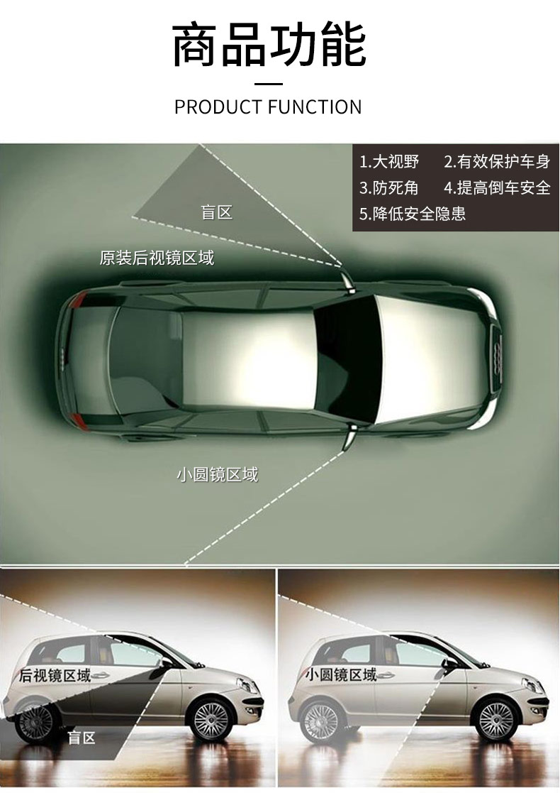 轻松倒车无盲区,降低安全隐患,安全驾驶,电动车、摩托车也可以使用【赠运费险