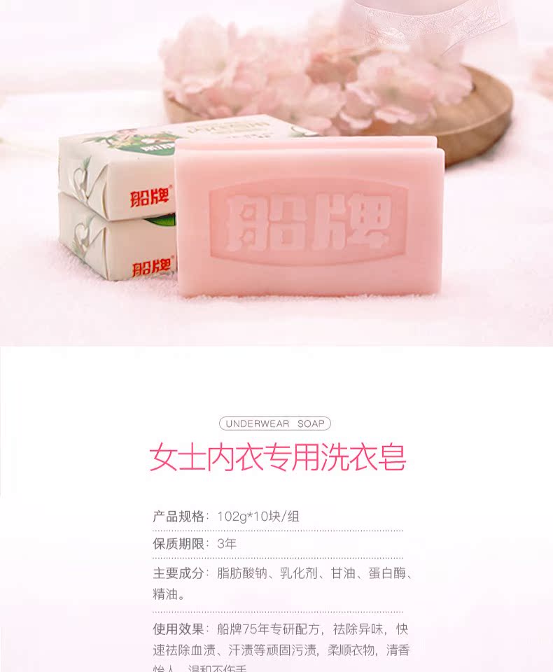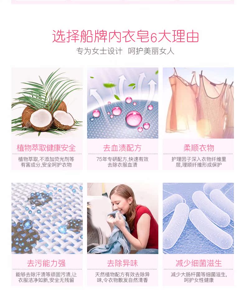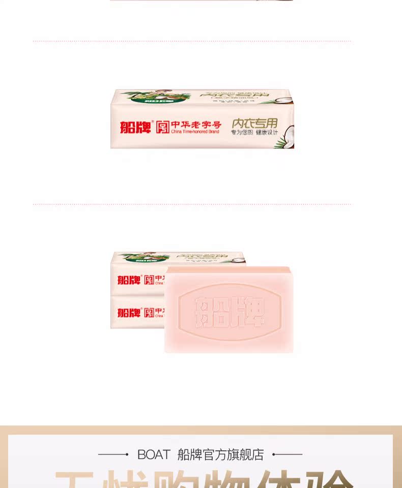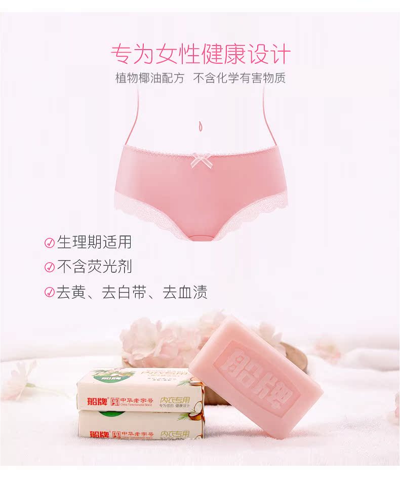 船牌内衣皂,天然植物配方,4.9高评分!专为女性健康设计,不含荧光剂,瓦解血渍,去污抑菌,能有效的减少细菌滋生,还能柔顺衣物,呵护女性健康从船牌内衣皂做起~【赠运费险】
