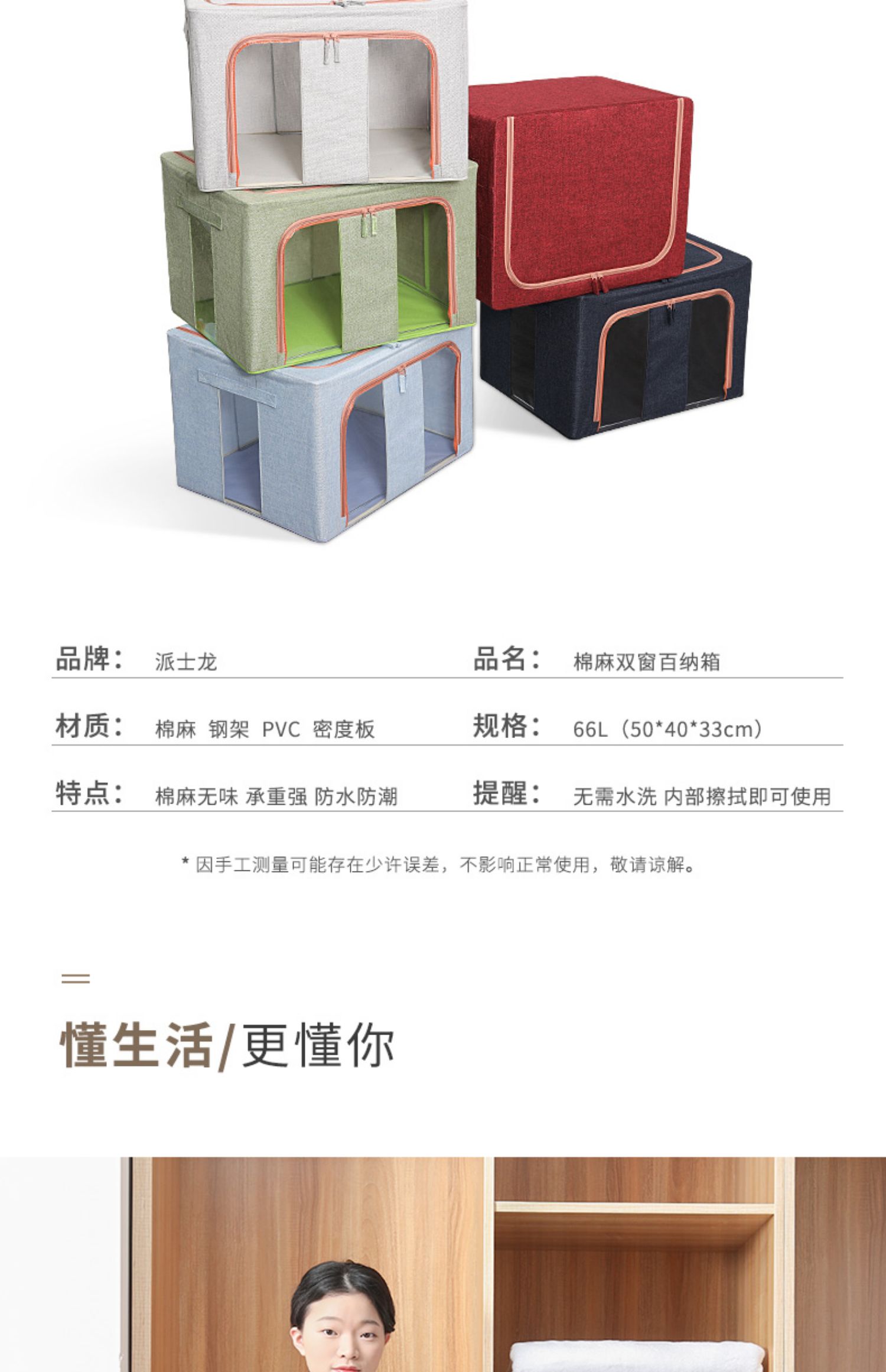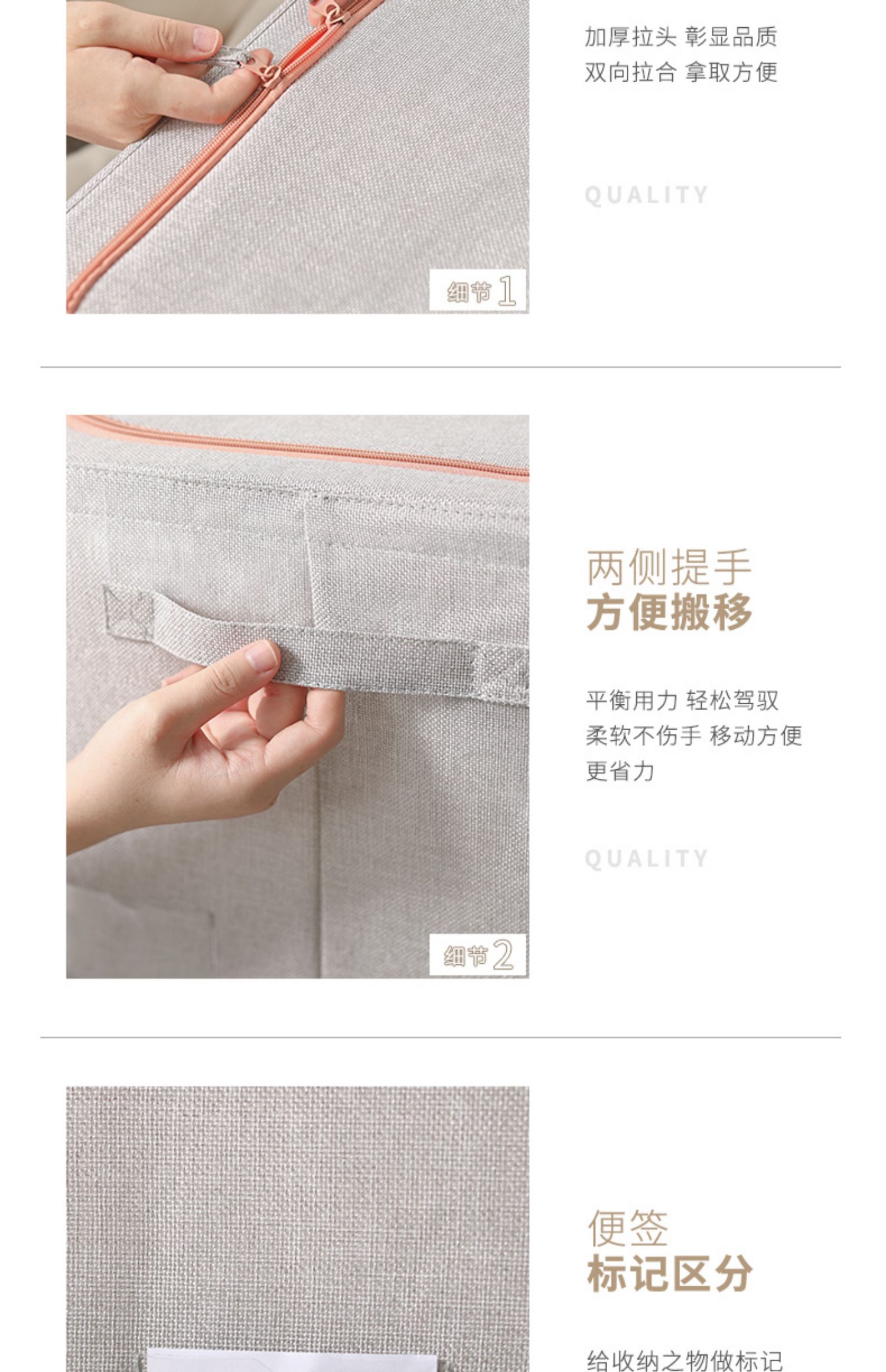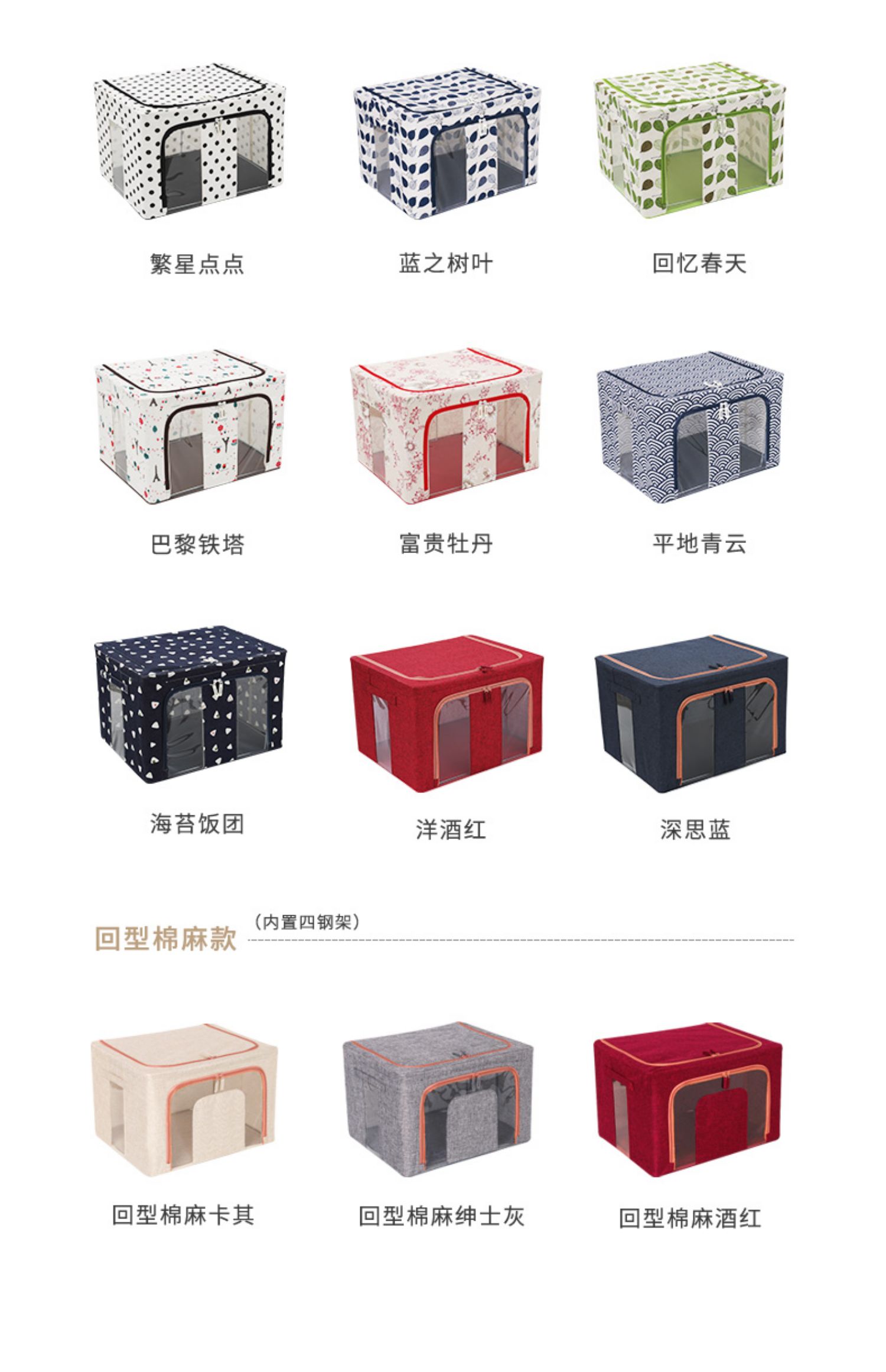 【收纳神器】上等棉麻布艺材质,健康环保,加粗折叠钢架,防水防潮,耐磨耐用,加厚双向拉链,两侧提手设计,便签标记区分拿取方便,节省空间又省事,让家居生活更简洁!【赠运费险】