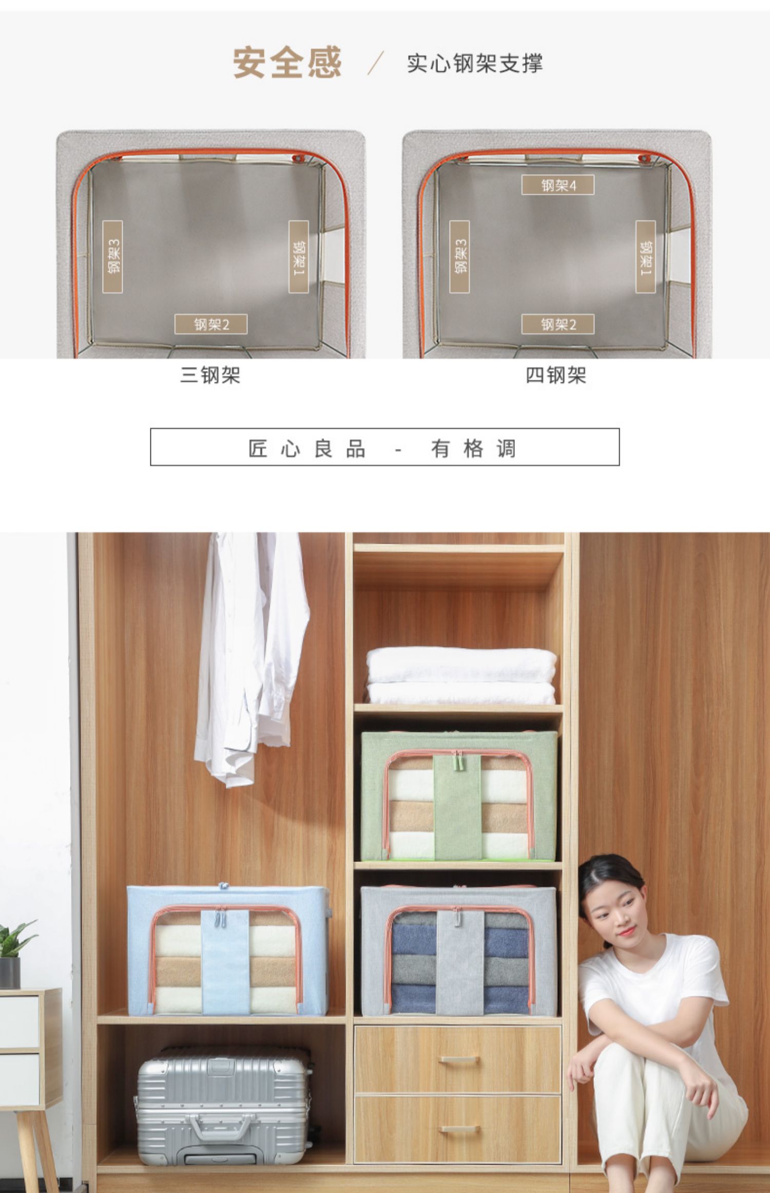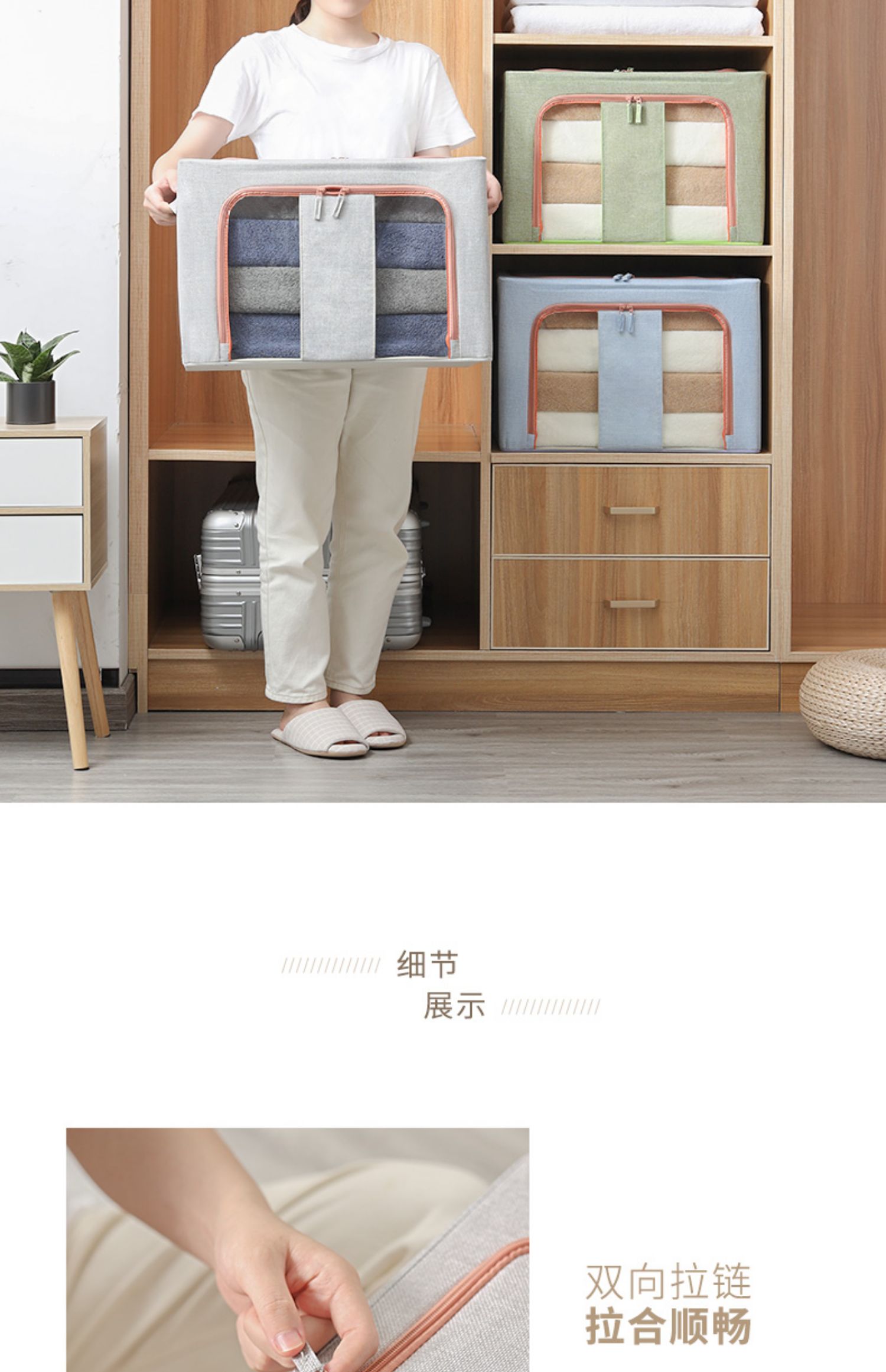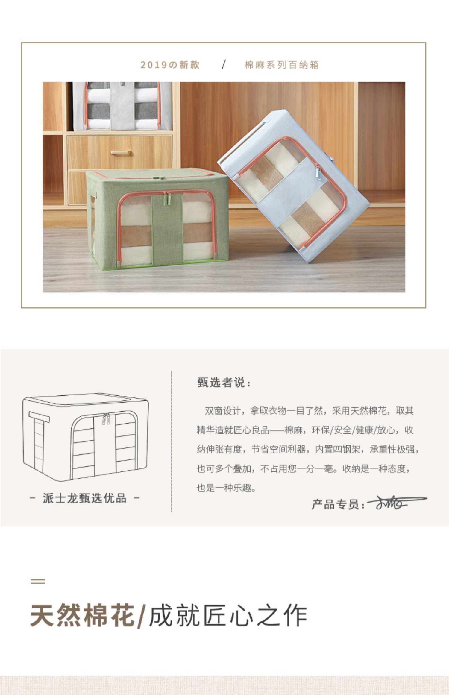 【收纳神器】上等棉麻布艺材质,健康环保,加粗折叠钢架,防水防潮,耐磨耐用,加厚双向拉链,两侧提手设计,便签标记区分拿取方便,节省空间又省事,让家居生活更简洁!【赠运费险】